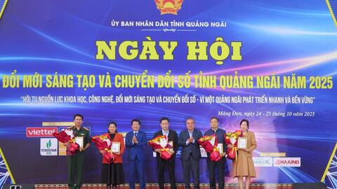 Khai mạc Ngày hội đổi mới sáng tạo và chuyển đổi số tỉnh Quảng Ngãi năm 2025 Chiều 24-10, tại xã Măng Đen, UBND tỉnh đã tổ chức khai mạc Ngày hội đổi mới sáng tạo và chuyển đổi số tỉnh Quảng Ngãi năm 2025, với chủ đề “Hội tụ nguồn lực khoa học, công nghệ, đổi mới sáng tạo và chuyển đổi số - Vì một Quảng Ngãi phát triển nhanh ...