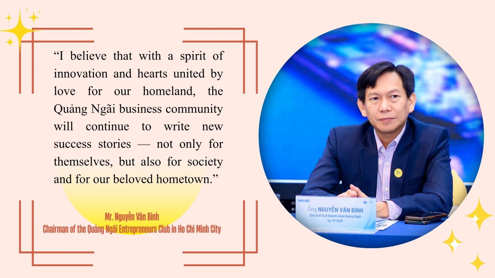 “Quảng Ngãi people are known for their strong personalities, resilience, and determination to prove themselves. Yet, the Club exists to unite those independent spirits under one common roof — a home where we share, learn, and walk together.”
