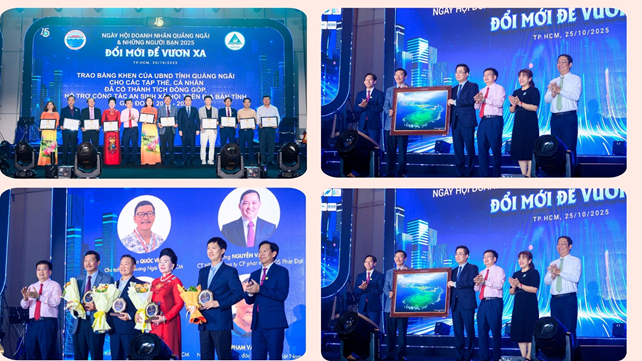 On this special occasion, the Quảng Ngãi Provincial People’s Committee presented commemorative gifts to the Quảng Ngãi Compatriots' Association and the Quảng Ngãi Entrepreneurs' Club in Hồ Chí Minh City, while also awarding Certificates of Merit to 11 collectives and individuals for their significant contributions to social welfare from 2010 to 2025.