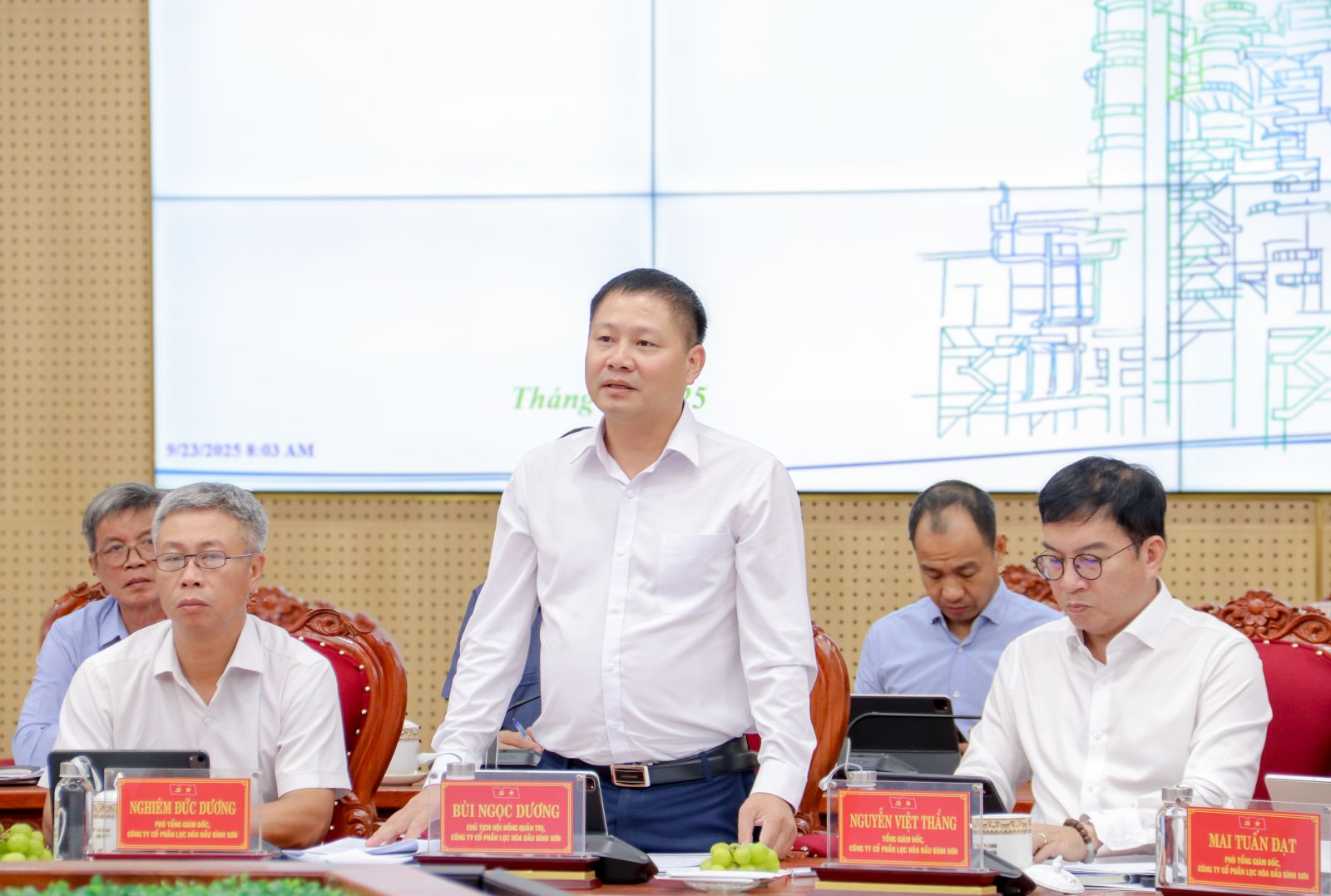 Chairman of the Board of Directors of BSR Bùi Ngọc Dương reports at the meeting