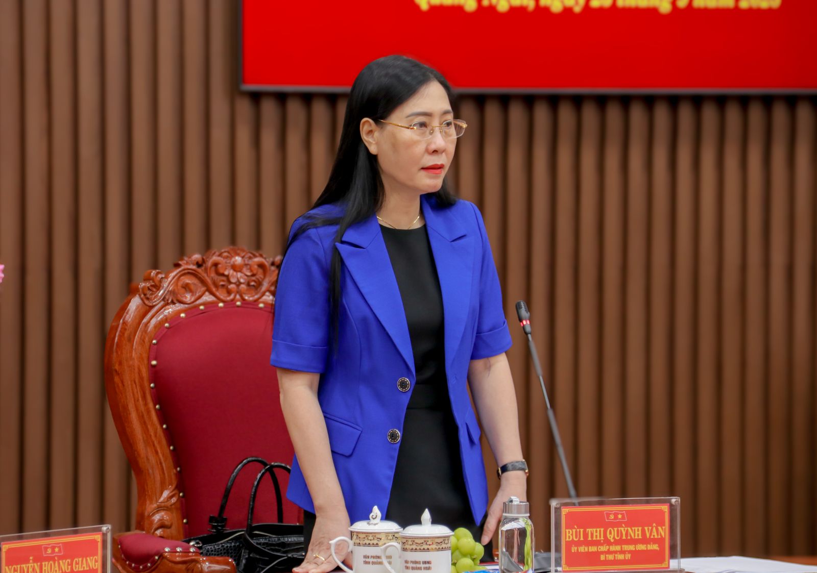 Secretary Bùi Thị Quỳnh Vân speaks at the meeting