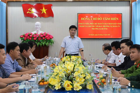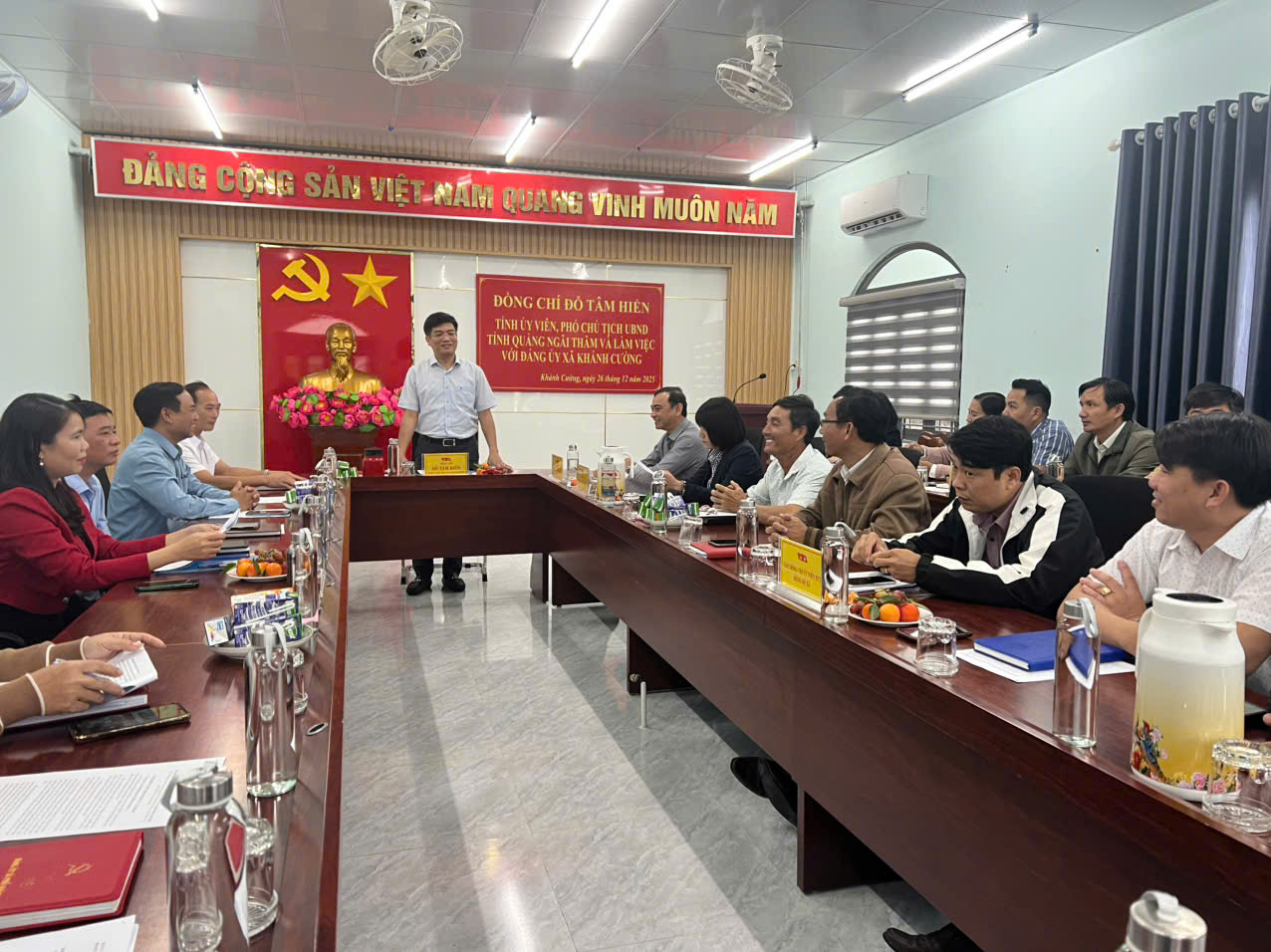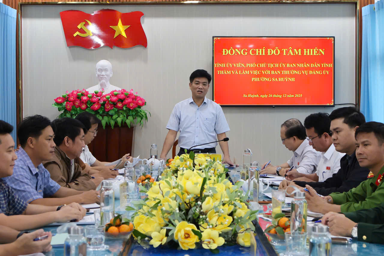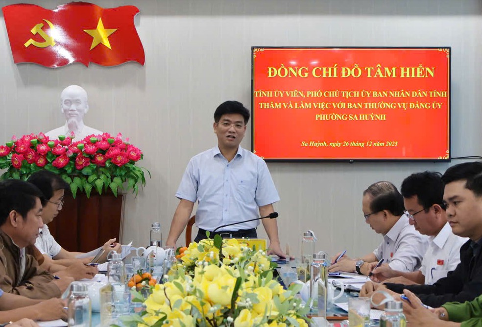 On December 26, Đỗ Tâm Hiển, Vice Chairman of the Quảng Ngãi Provincial People’s Committee, held a working session with the Party Committee of Sa Huỳnh Ward and Khánh Cường Commune to review socio-economic development, national defense and security, Party building, and political system consolidation in 2025, and to outline key tasks for 2026.