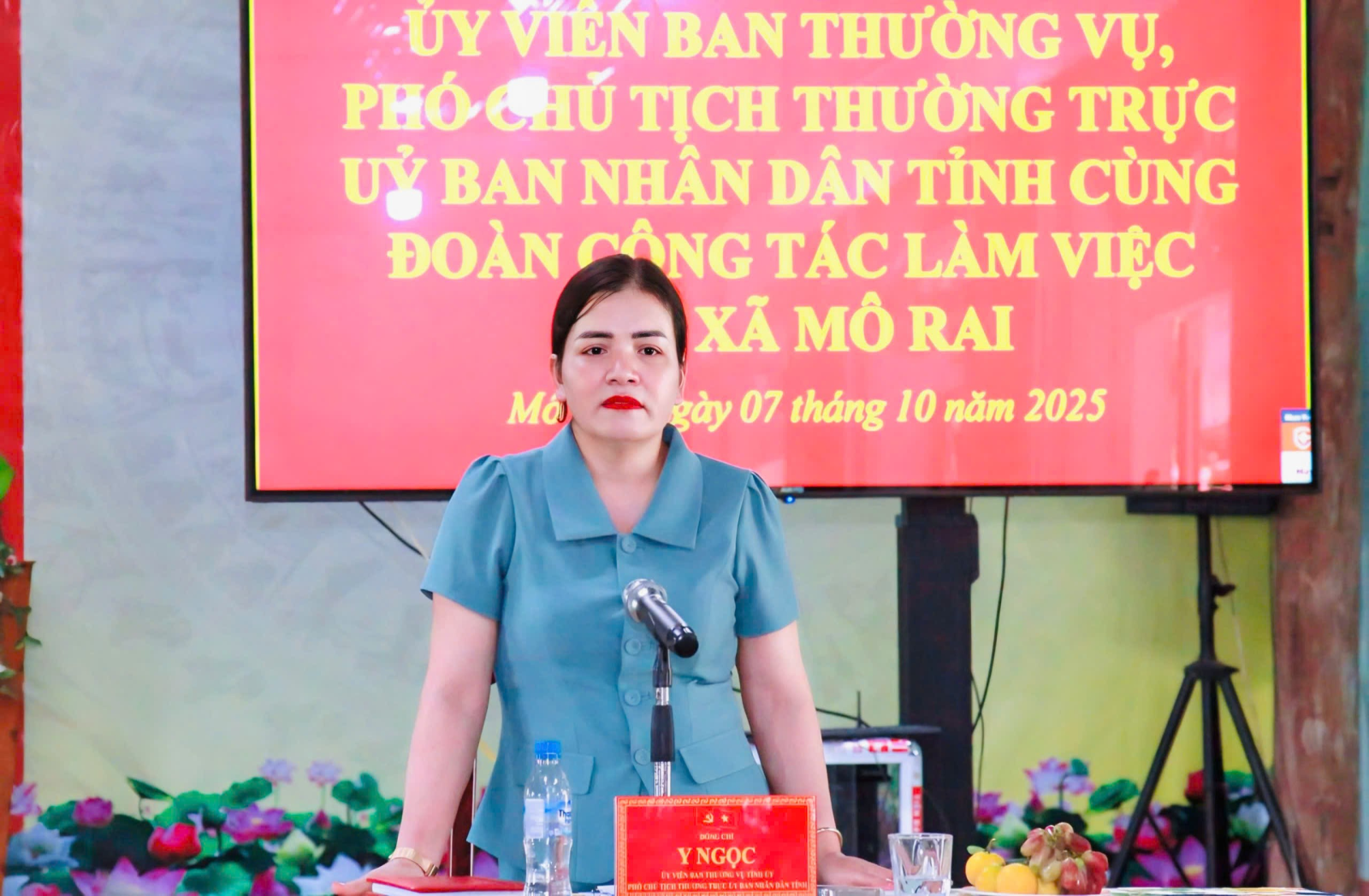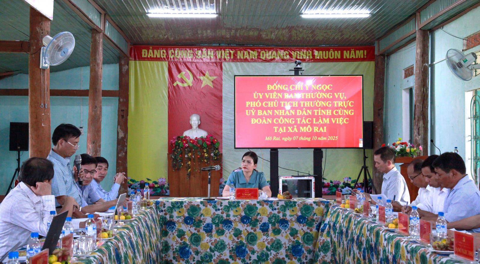 On October 7, Standing Vice Chairwoman of the Provincial People’s Committee Y Ngọc had a working session with Mô Rai Commune to review socio-economic development, national defense, and security in the first nine months of 2025 and outline key tasks for the coming period.