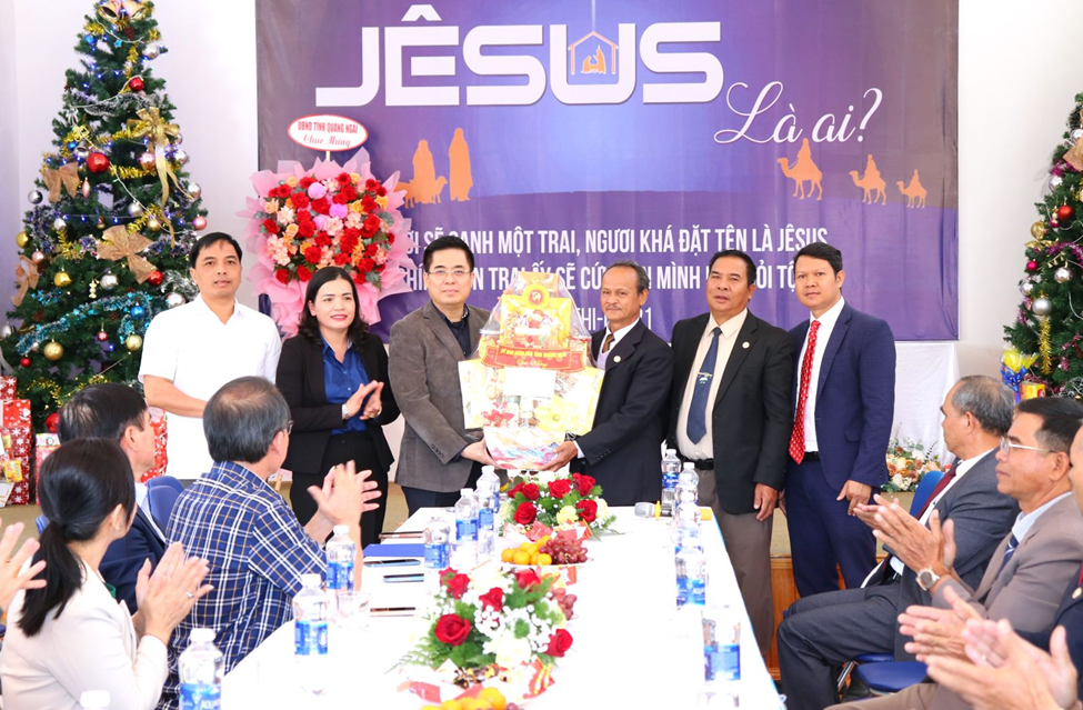 On behalf of the Đăk Glei Protestant Church, Pastor A Héo, Head of the Church, thanked the Chairman and the delegation for their visit and Christmas greetings. He expressed confidence that under the leadership of the Provincial Party Committee and the effective administration of local authorities, Quảng Ngãi Province would achieve further positive outcomes, and reaffirmed the Church’s commitment to accompanying the Party, the government and people of the province in promoting compliance with the Party’s guidelines and the State’s laws, contributing to the province’s overall development.