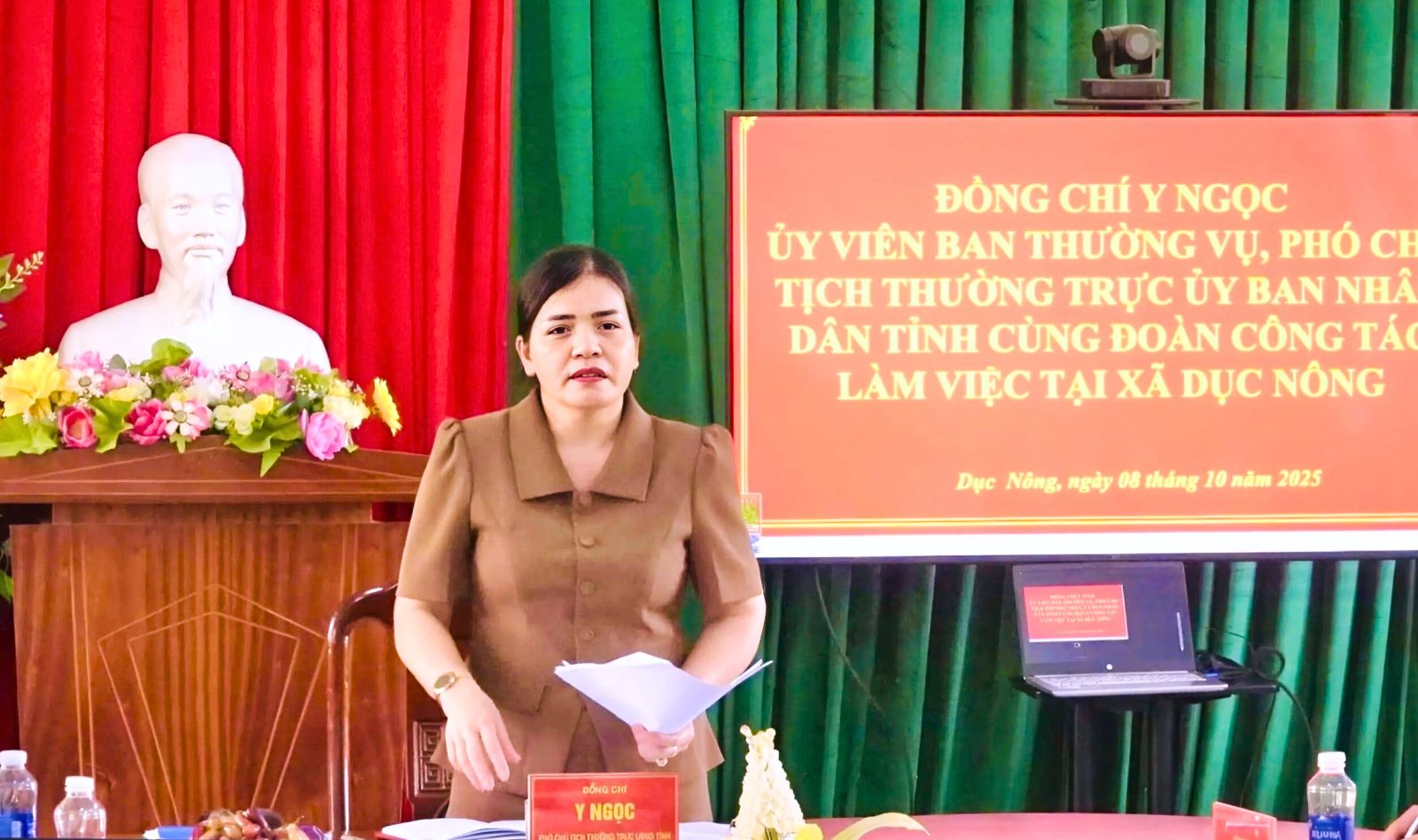 On October 8, Standing Vice Chairwoman of the Quảng Ngãi Provincial People’s Committee Y Ngọc worked with Dục Nông commune to review socio-economic development, national defense and security in the first nine months of 2025 and outline upcoming tasks.