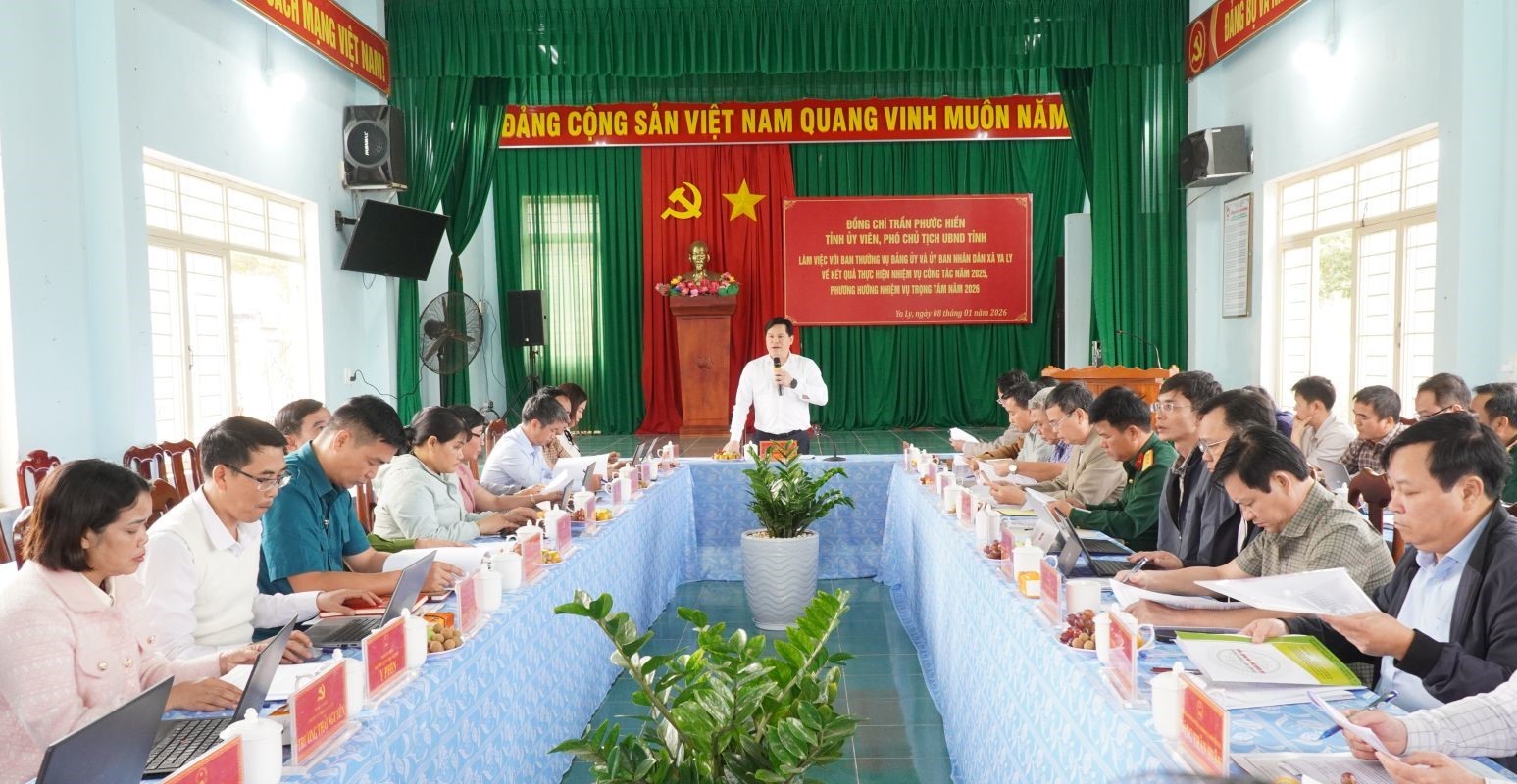 QUẢNG NGÃI — Vice Chairman of the Provincial People’s Committee Trần Phước Hiền on January 8 held a working session with the Standing Board of the Ya Ly Commune Party Committee and the commune administration to review socio-economic development, national defence-security, and Party building in 2025, and to set key tasks for 2026.