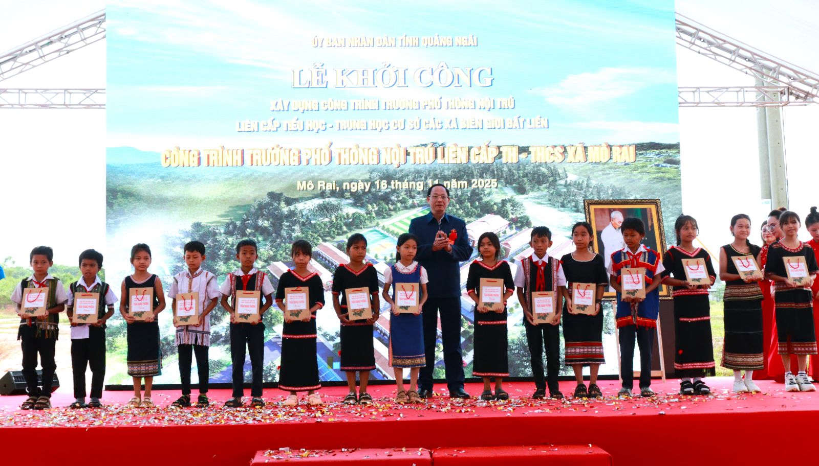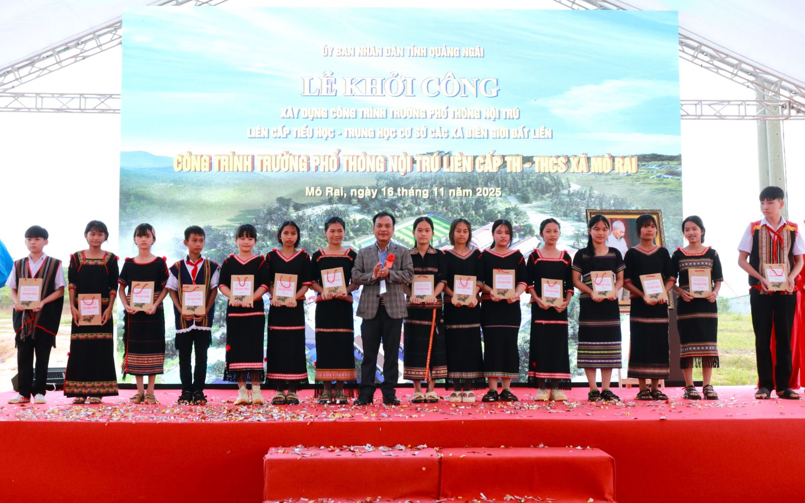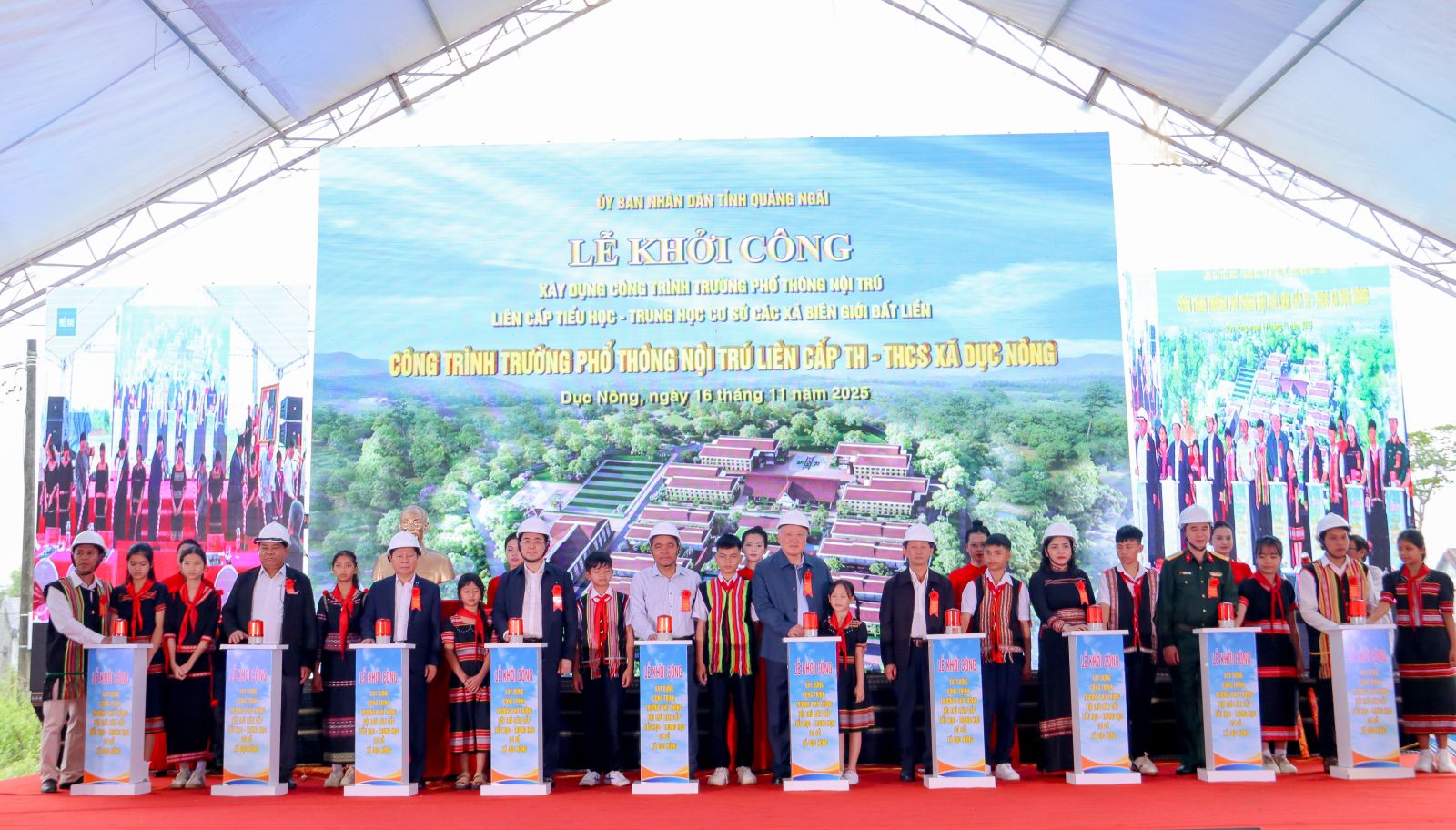 On the morning of 16 November, Quảng Ngãi province commenced construction of inter-level primary and lower secondary boarding schools in four land-border communes: Mô Rai, Dục Nông, Rờ Kơi and Sa Loong. These are the first projects implemented under the policy to develop boarding schools in all nine border communes.