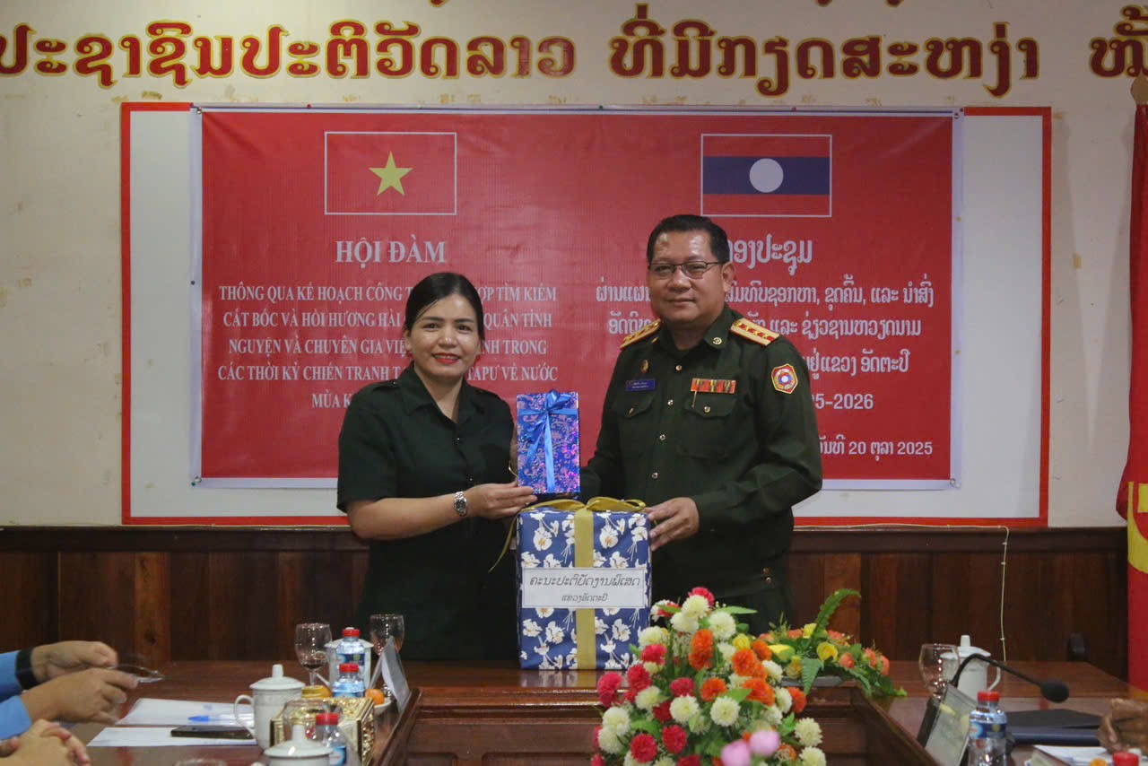 On October 20, in Attapư Province, Lào PDR, Y Ngọc, Member of the Standing Committee of the Quảng Ngãi Provincial Party Committee, Standing Vice Chairwoman of the Provincial People’s Committee, and Head of the Steering Committee 515, led a delegation to hold talks with the Special Task Committee of Attapư Province on continuing the search, collection, and repatriation of remains of Vietnamese volunteer soldiers and experts during the 2025–2026 dry season.