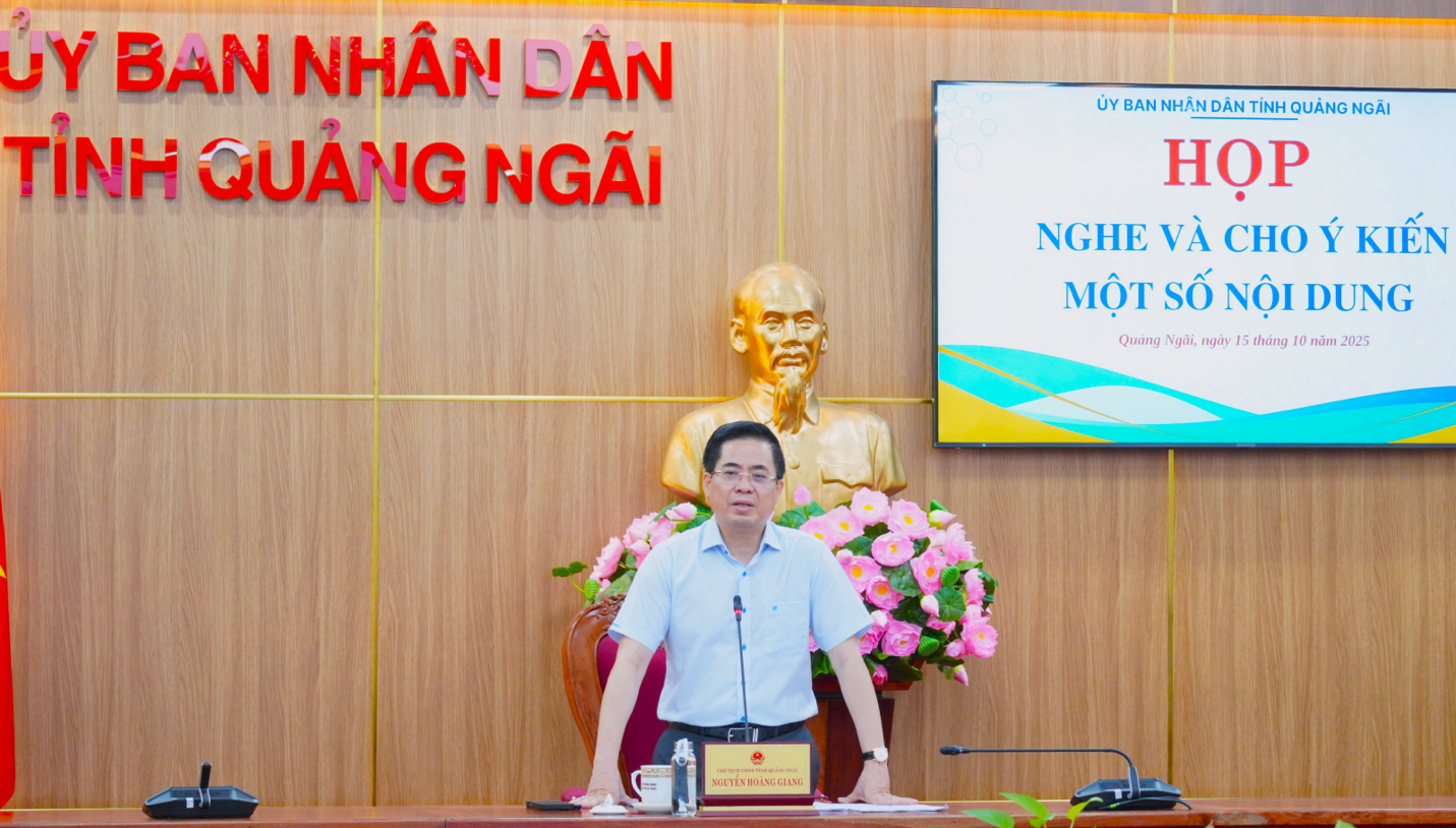 On October 15, Chairman of the Quảng Ngãi Provincial People’s Committee Nguyễn Hoàng Giang chaired a meeting to review recent leadership and management activities and set out key tasks for the final quarter of 2025.
