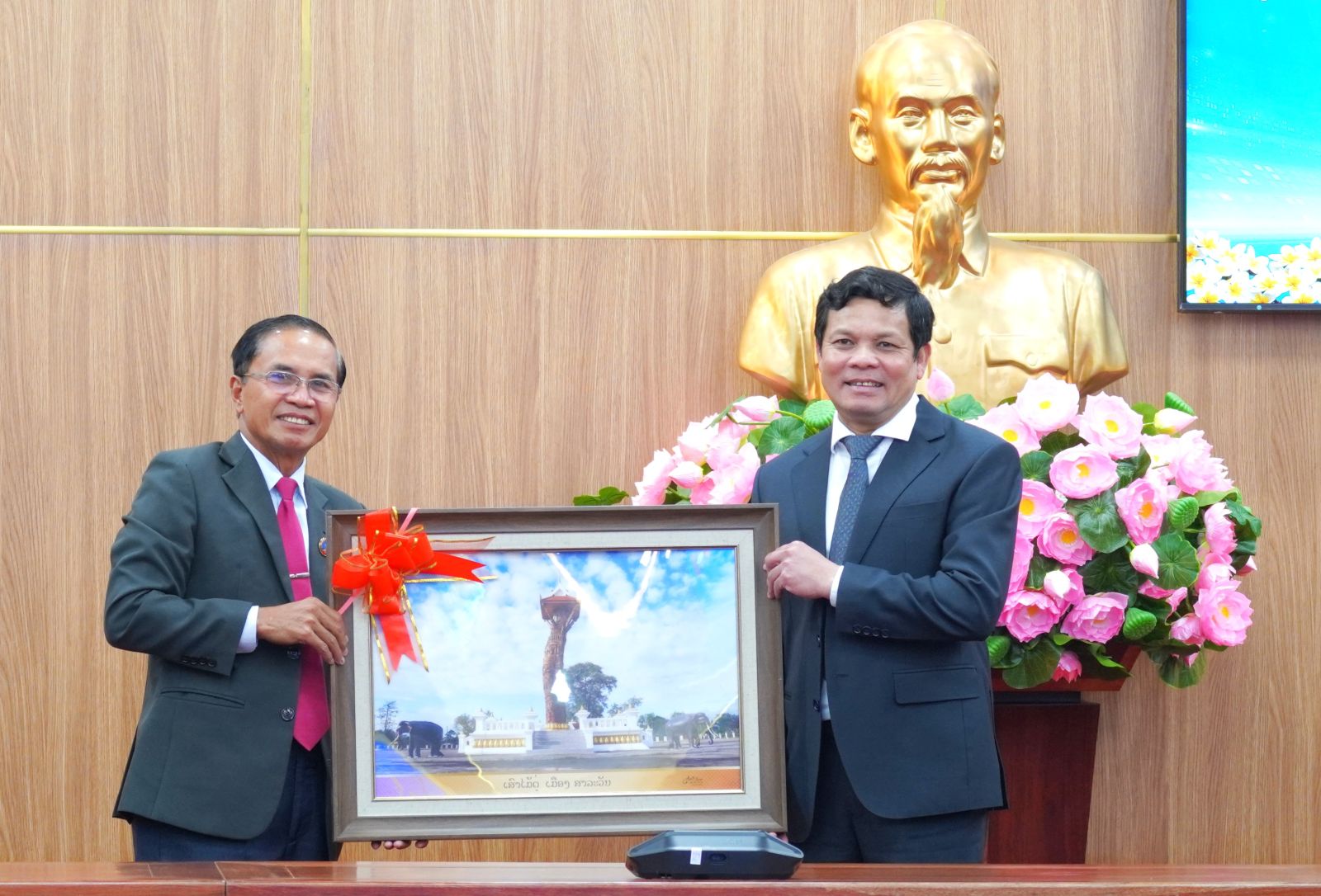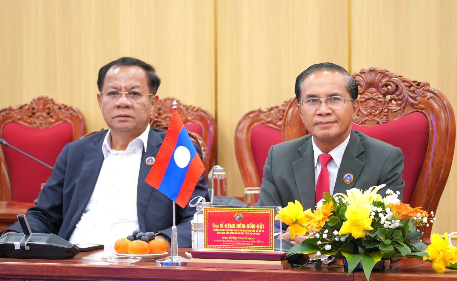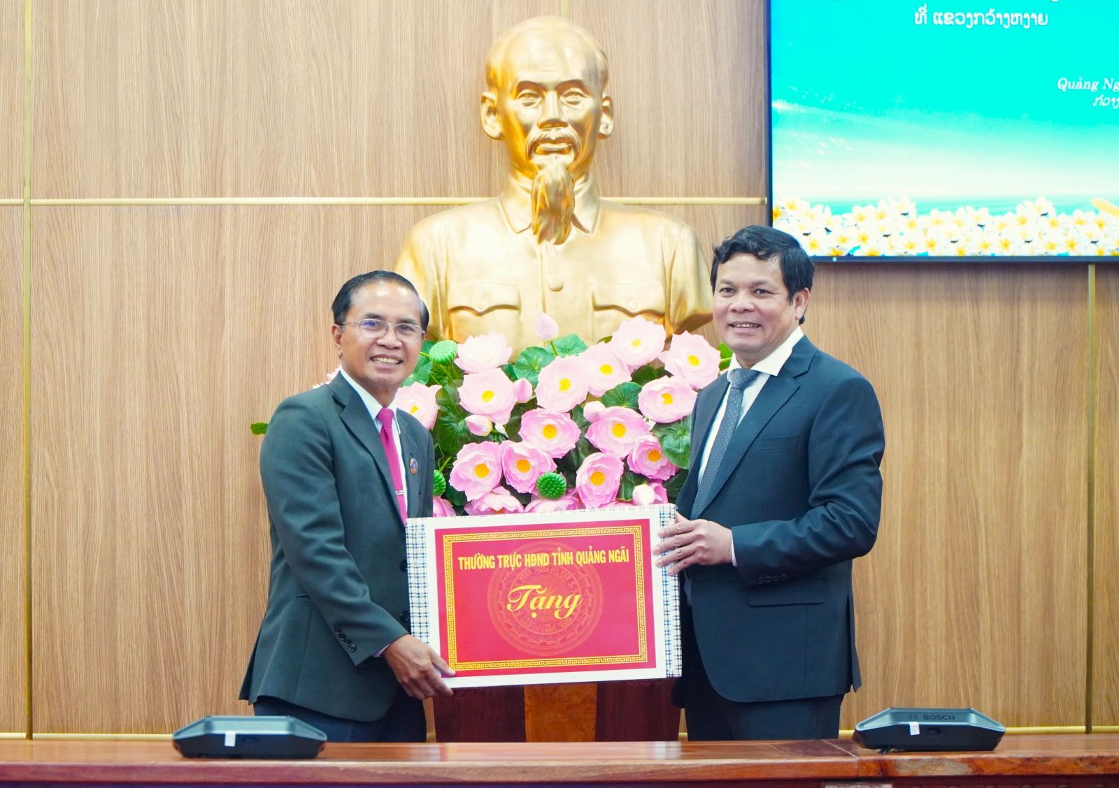 On the occasion of the New Year 2026, Chairman Nguyễn Đức Tuy conveyed his best wishes for health, happiness, and success to Chairman Sĩ-hêng Hỏm-sổm-bắt, the leaders, and people of Salavan Province, and expressed confidence that the Quảng Ngãi - Salavan relationship would continue to grow sustainably and enduringly.