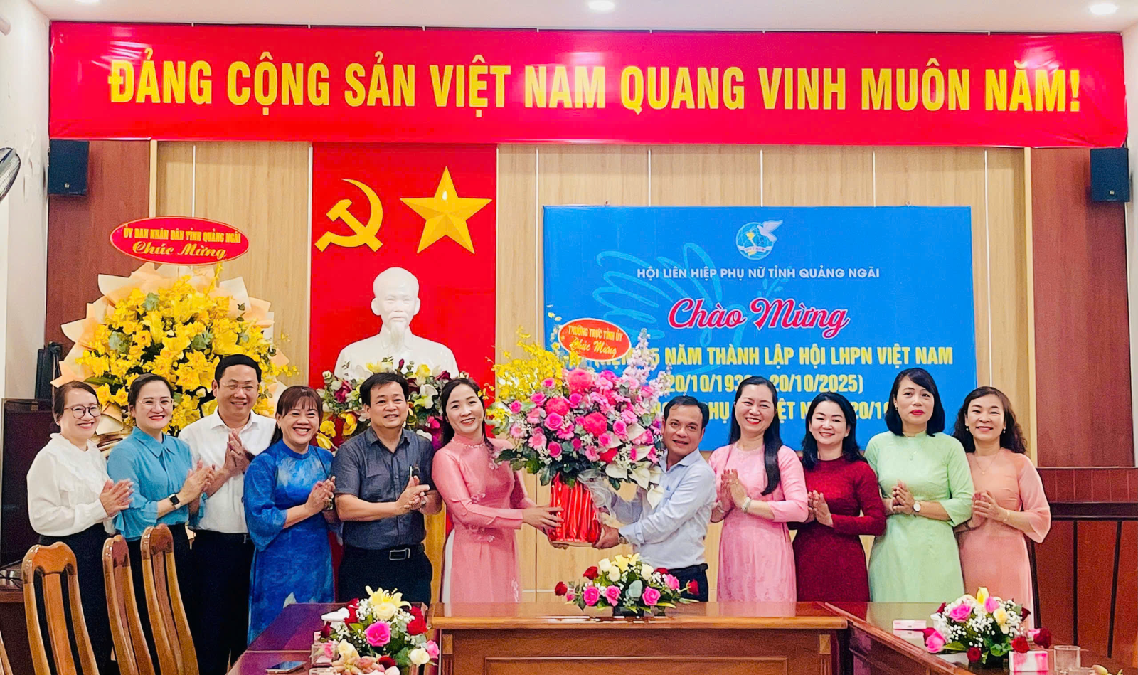 On October 15, Standing Deputy Secretary of the Provincial Party Committee U Huấn visited and extended congratulations to the Quảng Ngãi Provincial Women’s Union on the 95th anniversary of the Việt Nam Women’s Union (20/10/1930 – 20/10/2025) and Vietnamese Women’s Day (20/10).