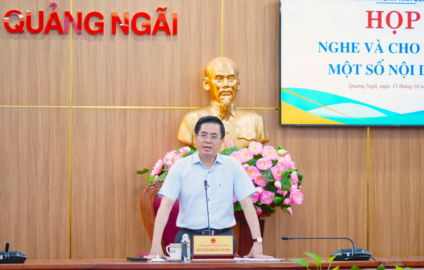 On the morning of October 15, Chairman of the Provincial People’s Committee Nguyễn Hoàng Giang chaired a meeting to review and provide opinions on several provincial matters. Vice Chairpersons Y Ngọc, Nguyễn Ngọc Sâm, and Nguyễn Công Hoàng, along with the PPC’s Members and representatives from relevant departments, attended the meeting.