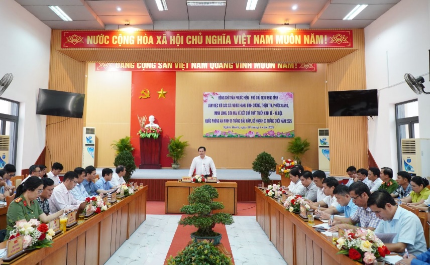 QUẢNG NGÃI – Vice Chairman of the Quảng Ngãi Provincial People’s Committee Trần Phước Hiền on September 30 met with the People’s Committees of Nghĩa Hành, Đình Cương, Thiện Tín, Phước Giang, Minh Long, and Sơn Mai communes to review socio-economic performance and security in the first nine months of 2025 and to set priorities for the final quarter.