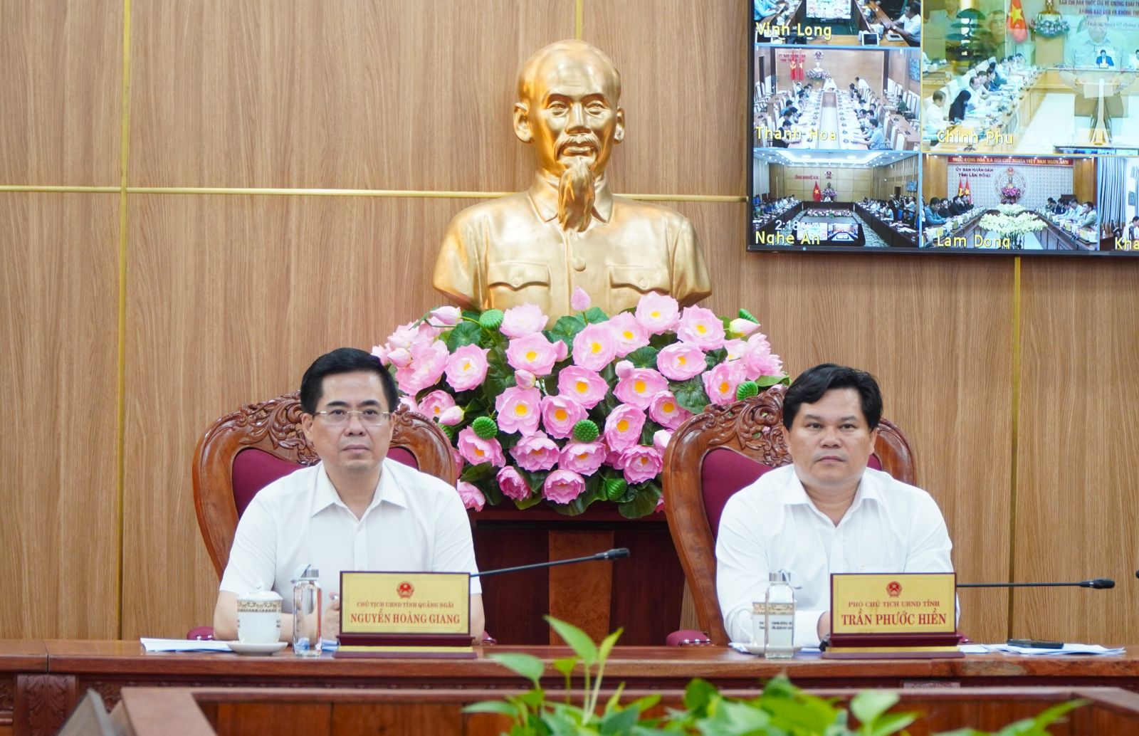 Chairman of the Quảng Ngãi Provincial People’s Committee Nguyễn Hoàng Giang, Vice Chairman Trần Phước Hiền, and leaders of relevant departments and localities attended the meeting at the Quảng Ngãi bridge point.