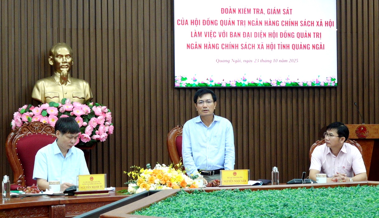 Concluding the session, Nguyễn Mạnh Tú acknowledged Quảng Ngãi’s close oversight and requested the Quảng Ngãi branch continue coordinating with local organizations, expand preferential credit programs, strengthen loan-group management, and proactively implement new credit products.