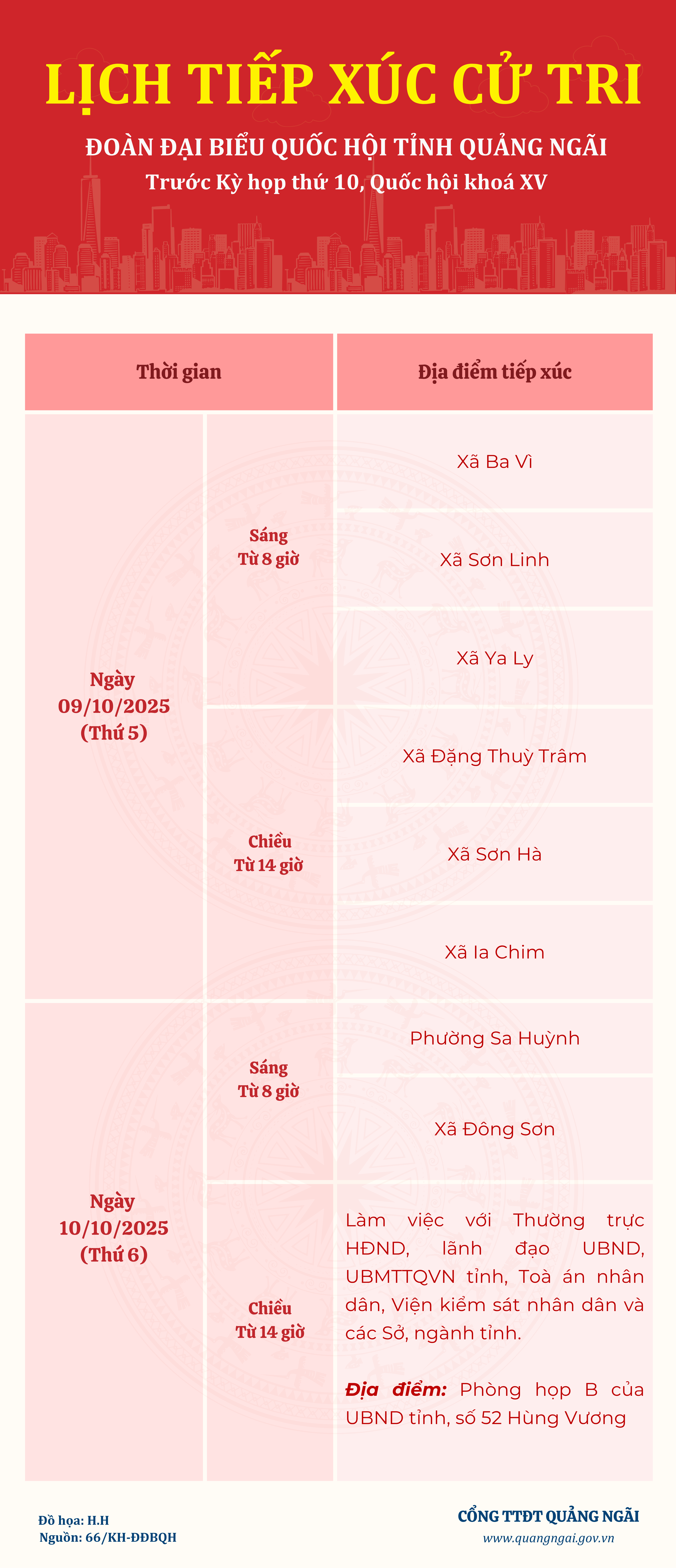 Thông báo lịch tiếp xúc cử tri của đại biểu Quốc hội trước Kỳ họp thứ 10, Quốc hội khóa XV