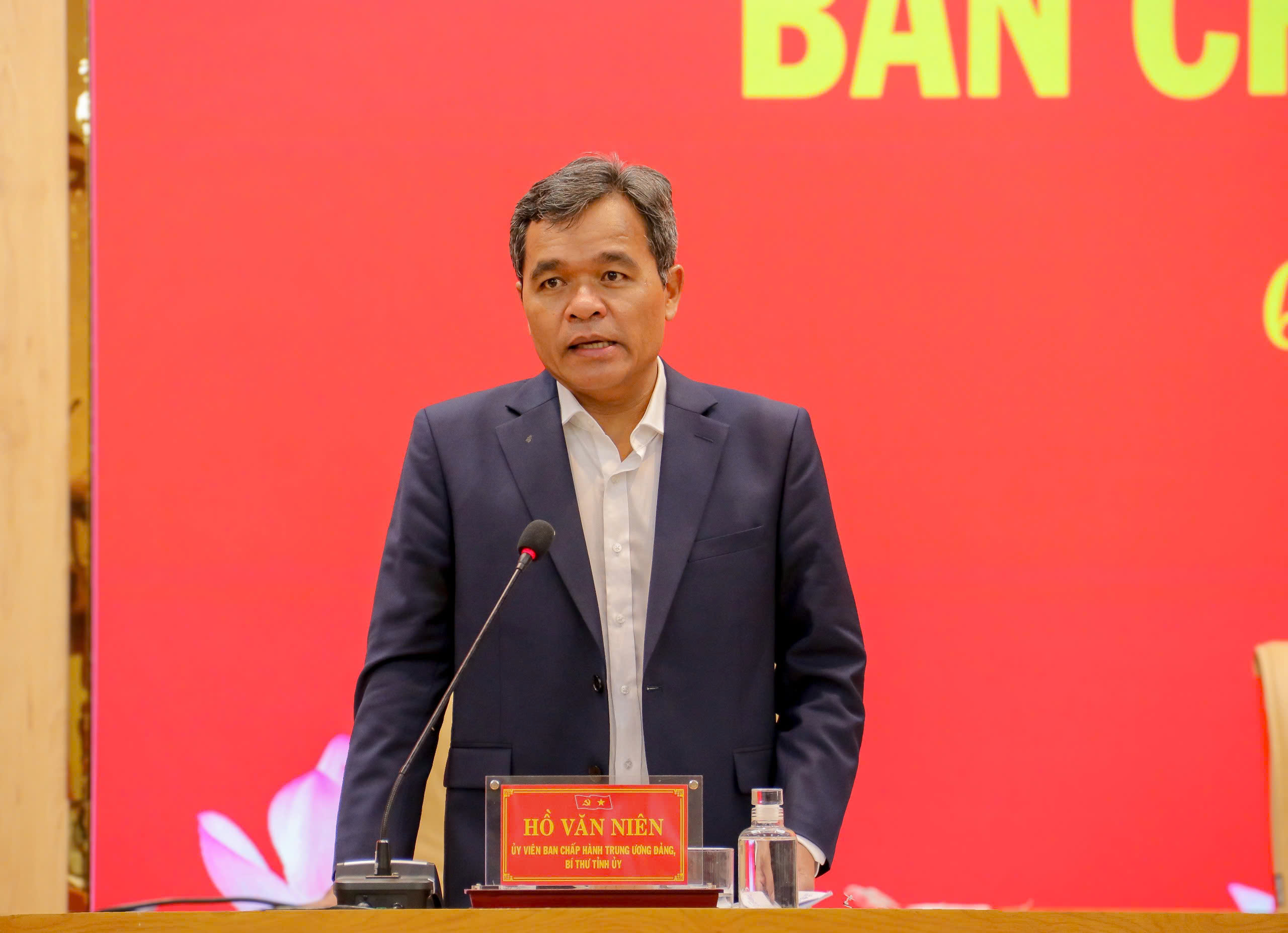Ủy viên Trung ương Đảng, Bí thư Tỉnh ủy Hồ Văn Niên phát biểu tại Hội nghị