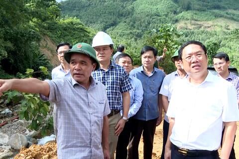 Bí thư Tỉnh ủy Hồ Văn Niên kiểm tra các điểm sạt lở trên địa bàn các xã Tây Trà và Tây Trà Bồng