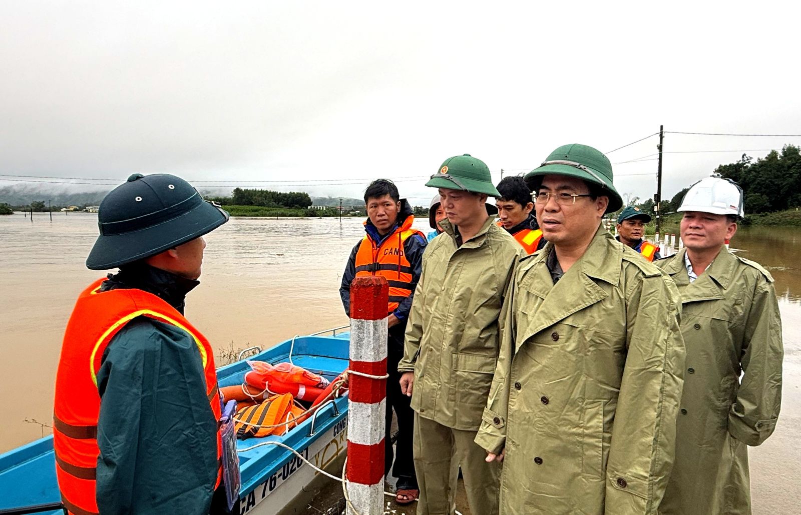 Tại hiện trường, Chủ tịch UBND tỉnh Nguyễn Hoàng Giang chia sẻ với những khó khăn, vất vả của người dân và chính quyền địa phương trong những ngày qua khi phải nỗ lực ứng phó với mưa lớn, ngập lụt kéo dài. Đồng thời yêu cầu, chính quyền xã tiếp tục tuyên truyền, vận động người dân, nhất là các hộ ở khu vực ngập sâu, chủ động phòng tránh, ứng phó mưa lũ; đồng thời, lực lượng chức năng phải triển khai phương án theo đúng kịch bản đã được xây dựng, linh hoạt xử lý hiệu quả các tình huống phát sinh, bảo đảm an toàn tính mạng và tài sản của nhân dân và Nhà nước.