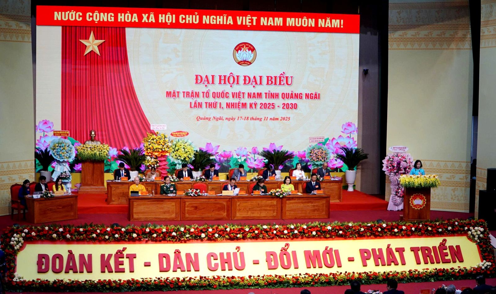 Sáng 18-11, Ủy ban Mặt trận Tổ quốc Việt Nam tỉnh Quảng Ngãi long trọng khai mạc Đại hội đại biểu lần thứ I, nhiệm kỳ 2025 – 2030, với sự tham dự của hơn 300 đại biểu tiêu biểu đại diện các giai cấp, tầng lớp Nhân dân, tôn giáo, nhân sĩ, trí thức và doanh nhân trong tỉnh. Đại hội được xác định là sự kiện chính trị quan trọng, cụ thể hóa Nghị quyết Đại hội Đảng bộ tỉnh và thể hiện quyết tâm xây dựng Quảng Ngãi phát triển bền vững trong giai đoạn mới.