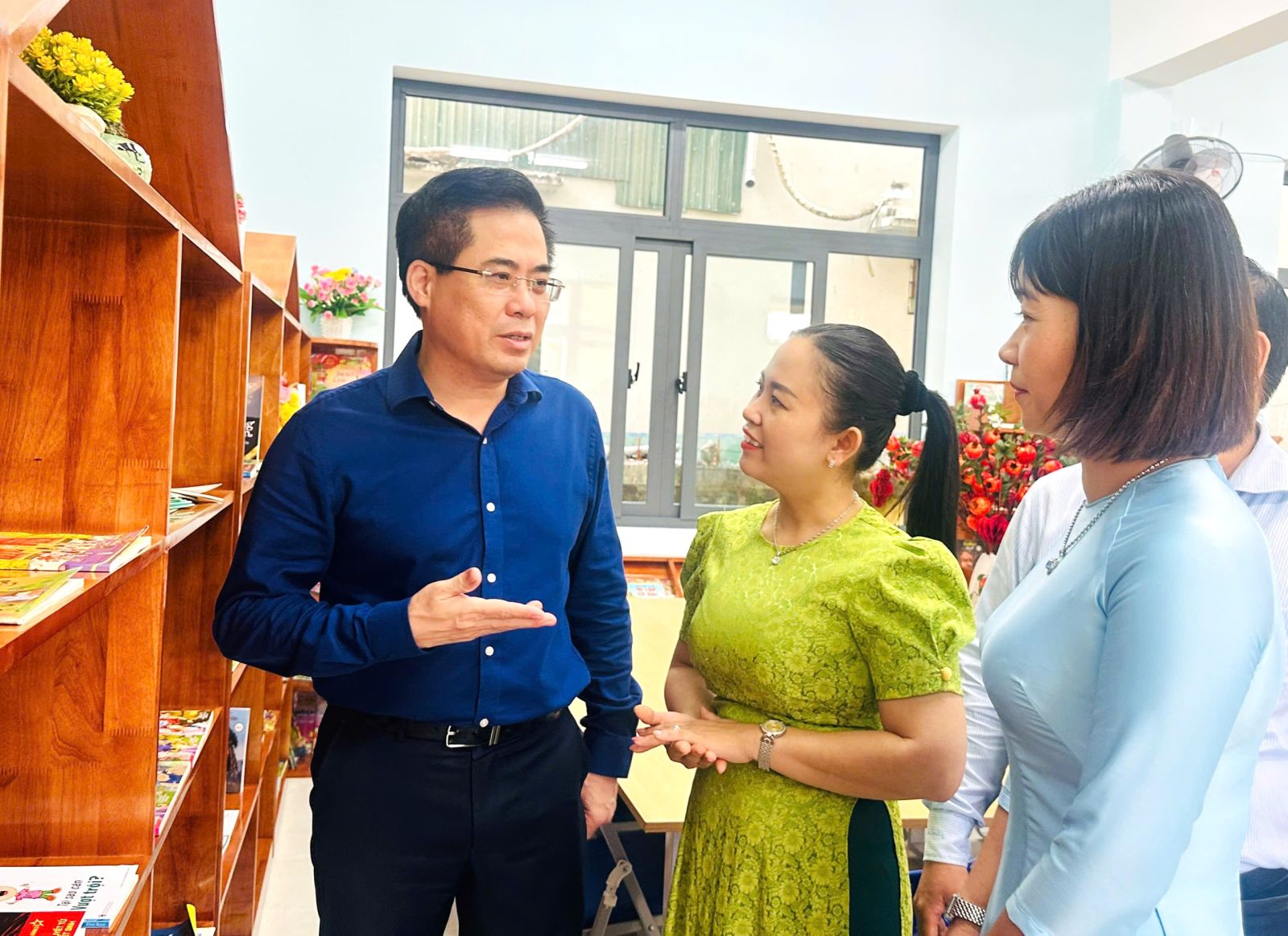 Chủ tịch UBND tỉnh Nguyễn Hoàng Giang đến thăm thư viện Trường THCS Hành Minh