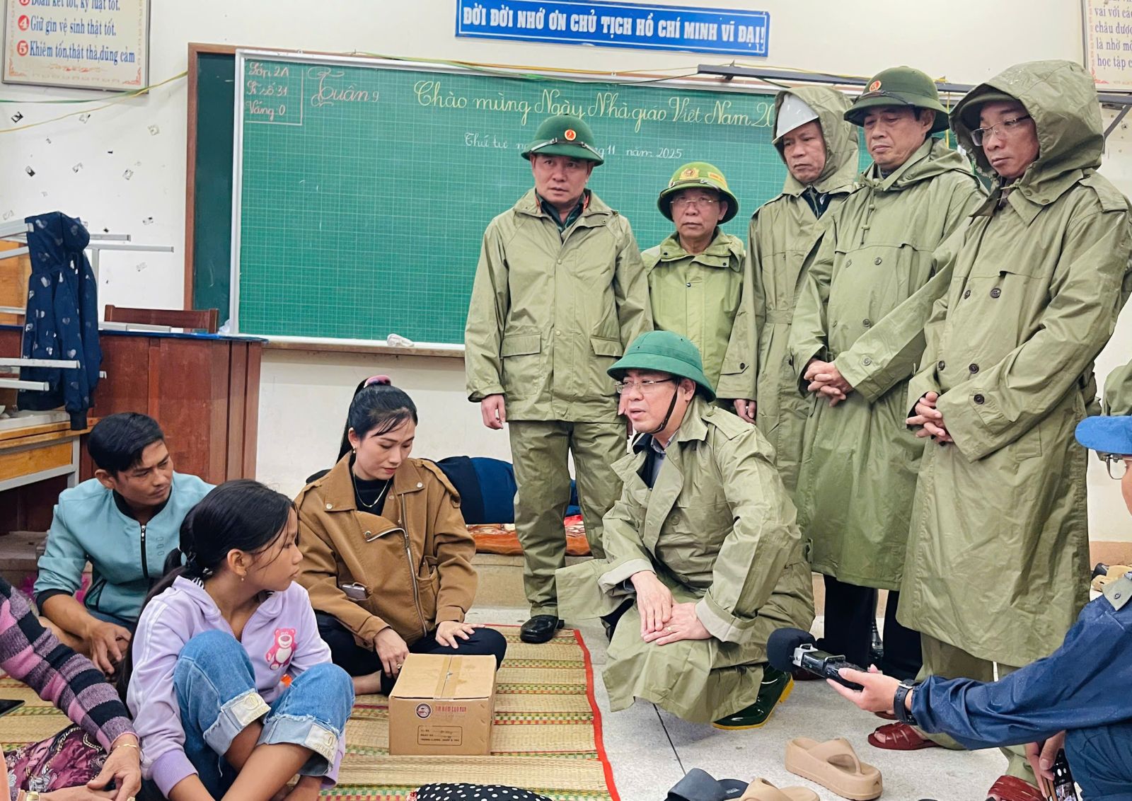 Chủ tịch UBND tỉnh Nguyễn Hoàng Giang đã đến thăm và động viên người dân tại điểm di dân tập trung Trường Tiểu học Đức Lợi. Chủ tịch UBND tỉnh hỏi thăm sức khỏe, chia sẻ với người dân về những khó khăn trong quá trình di dời, đồng thời mong người dân chấp hành nghiêm lệnh di dân của tỉnh chủ động phòng tránh để đảm bảo an toàn tính mạng. Chủ tịch UBND tỉnh nhấn mạnh, người dân chỉ nên trở về nhà khi bão tan và tình hình an toàn được đảm bảo.