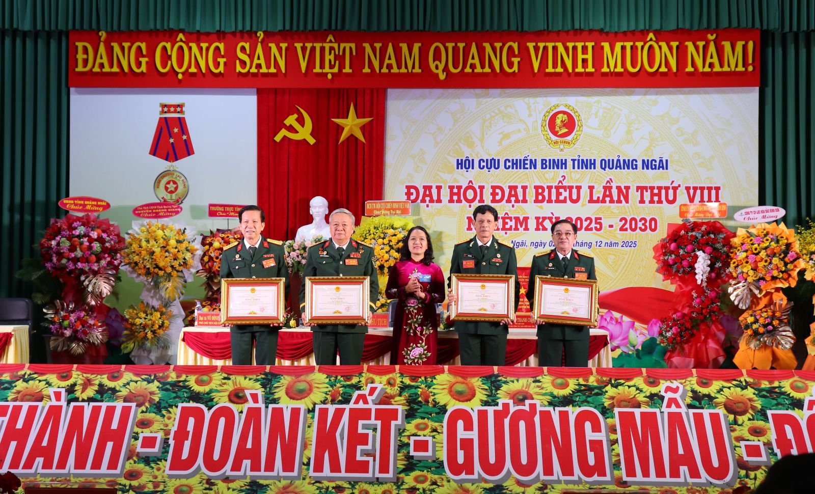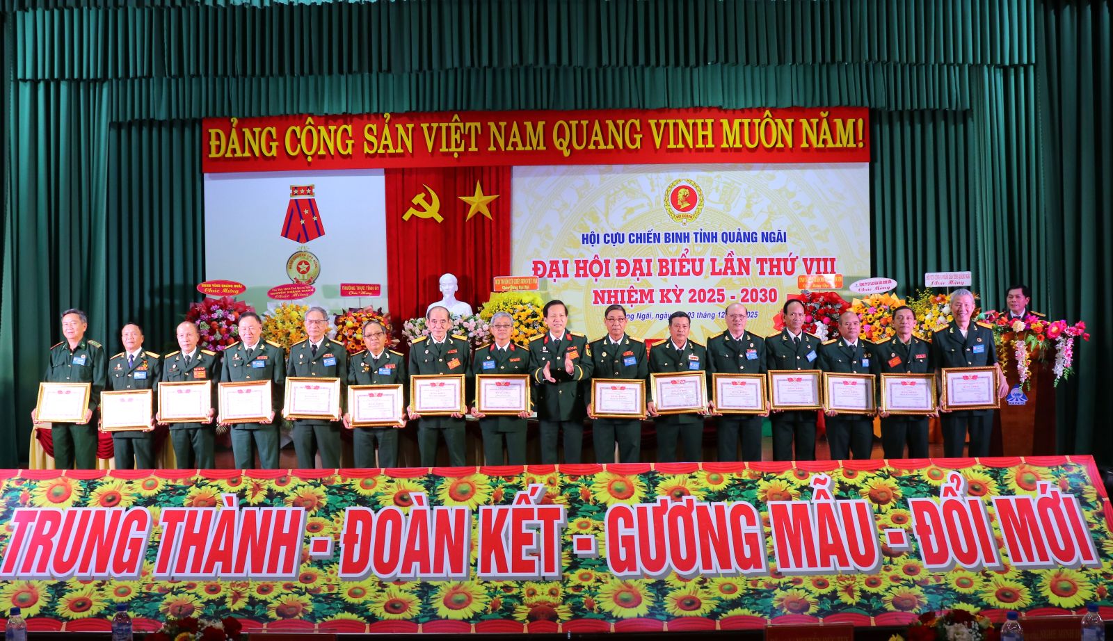 Dịp này, Hội CCB Việt Nam tặng cờ thi đua cho Hội CCB tỉnh Quảng Ngãi; Chủ tịch UBND tỉnh tặng Bằng khen cho 1 tập thể, 3 cá nhân đã có thành tích xuất sắc trong công tác Hội và phong trào thi đua “Cựu chiến binh gương mẫu”, giai đoạn 2022 - 2025. Hội CCB tỉnh tặng giấy khen cho 34 cá nhân có thành tích xuất sắc trong công tác Hội, nhiệm kỳ 2022-2027, giai đoạn 2022-2025.