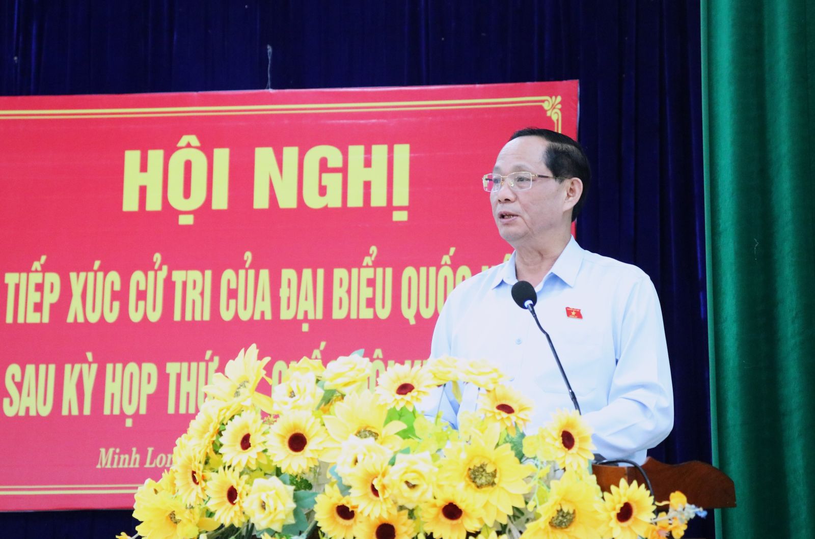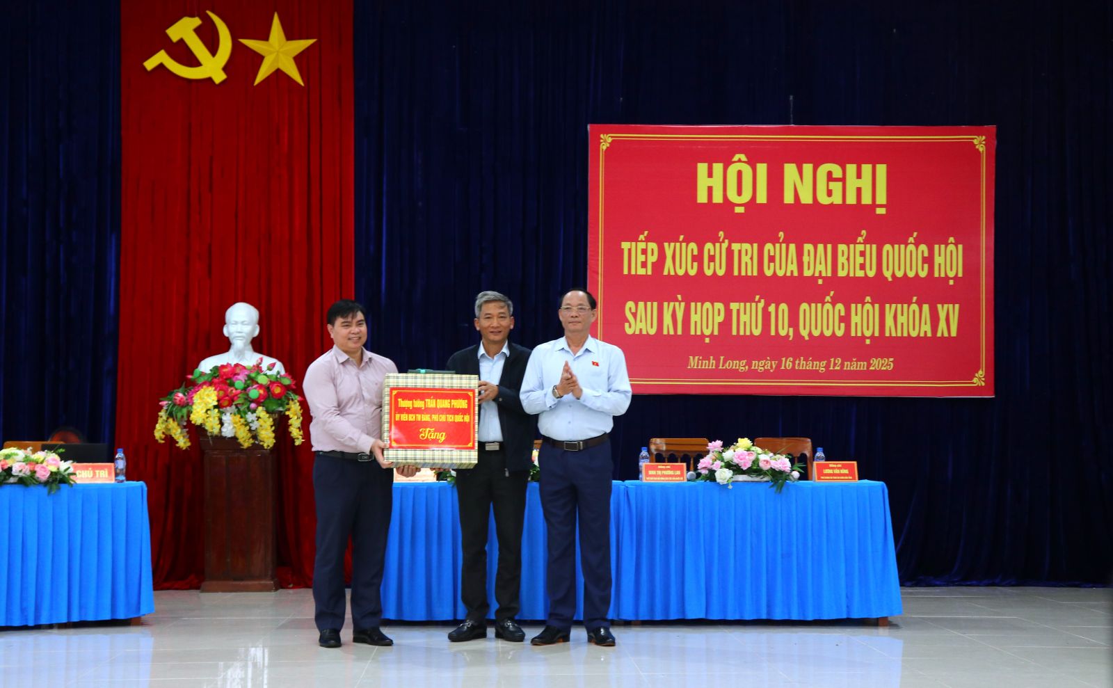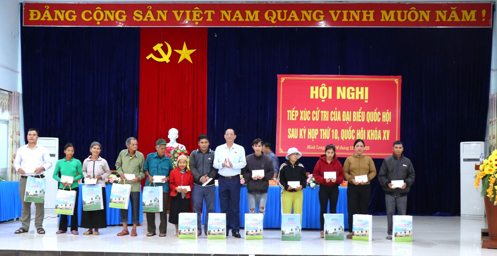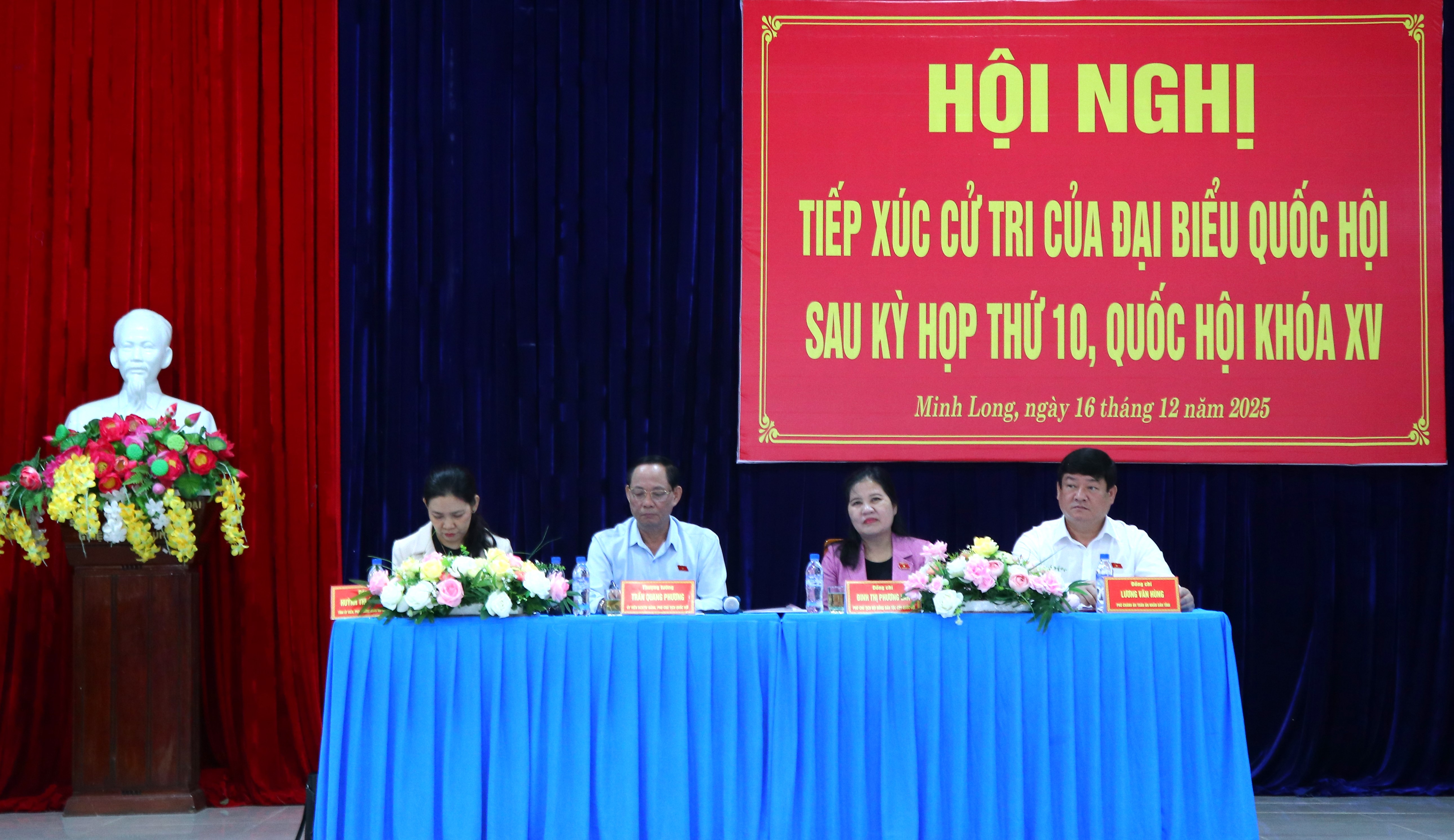 Trên tinh thần dân chủ, thẳng thắn, cử tri xã Minh Long đã phản ánh, kiến nghị nhiều vấn đề thiết thực gắn với đời sống dân sinh, như: đầu tư xây dựng các tuyến đường giao thông nông thôn, hỗ trợ vật liệu để bê tông hóa đường vào các xóm thôn Làng Trê, Đồng Vang; điều chỉnh mức hỗ trợ đối với thân nhân thờ cúng liệt sĩ; có chính sách phụ cấp hằng tháng cho người có uy tín trong vùng đồng bào dân tộc thiểu số; tiếp tục hỗ trợ xây dựng, sửa chữa nhà ở cho các hộ khó khăn thuộc Chương trình xóa nhà tạm, nhà dột nát; quan tâm sử dụng đội ngũ cán bộ không chuyên trách ở cấp xã;...