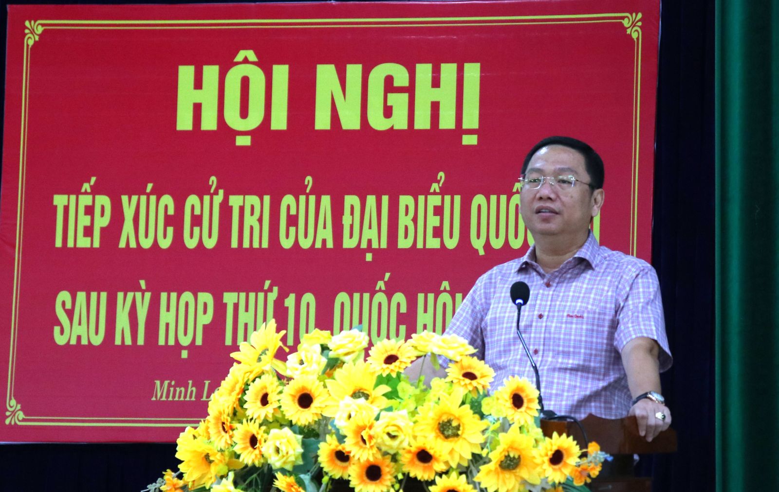 Dự buổi tiếp xúc cử tri có Phó Chủ tịch Thường trực Ủy ban MTTQ Việt Nam tỉnh Y Thị Bích Thọ; Phó Chủ tịch UBND tỉnh Nguyễn Công Hoàng; lãnh đạo các Sở, ngành và cử tri xã Minh Long.