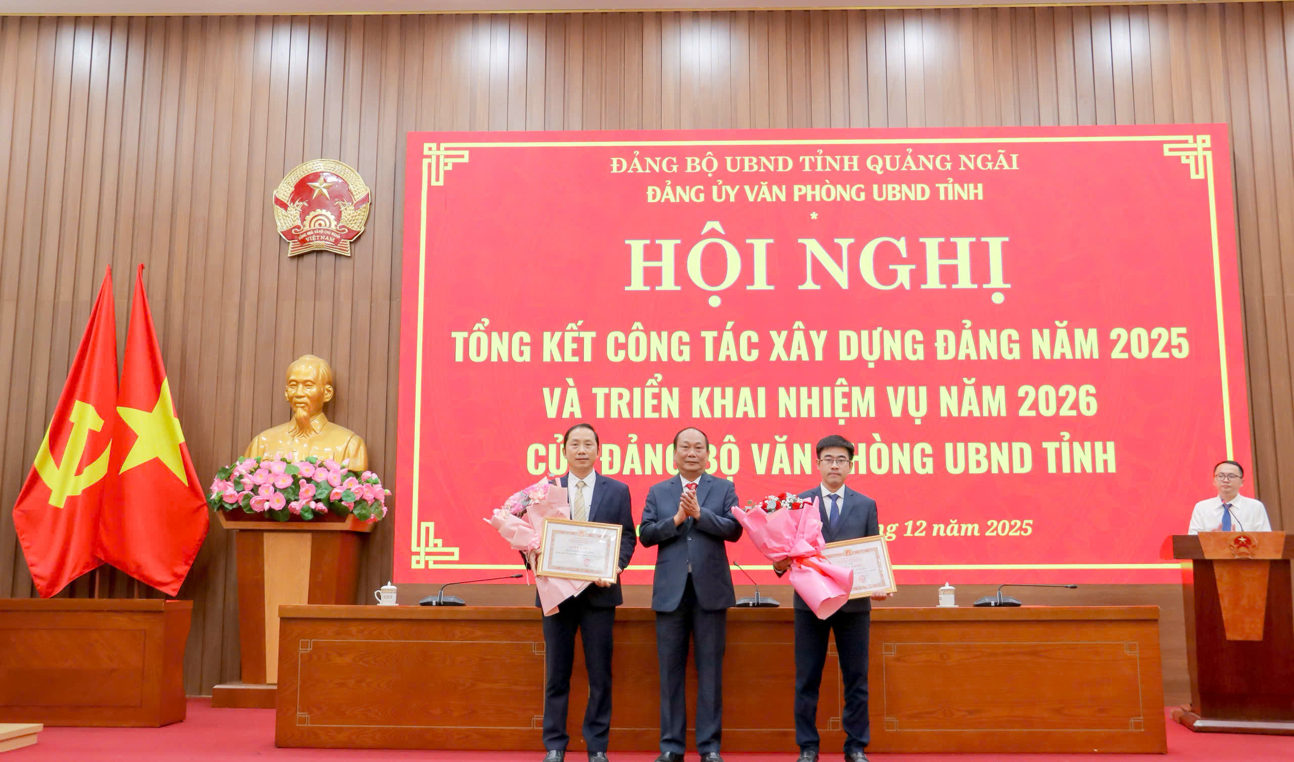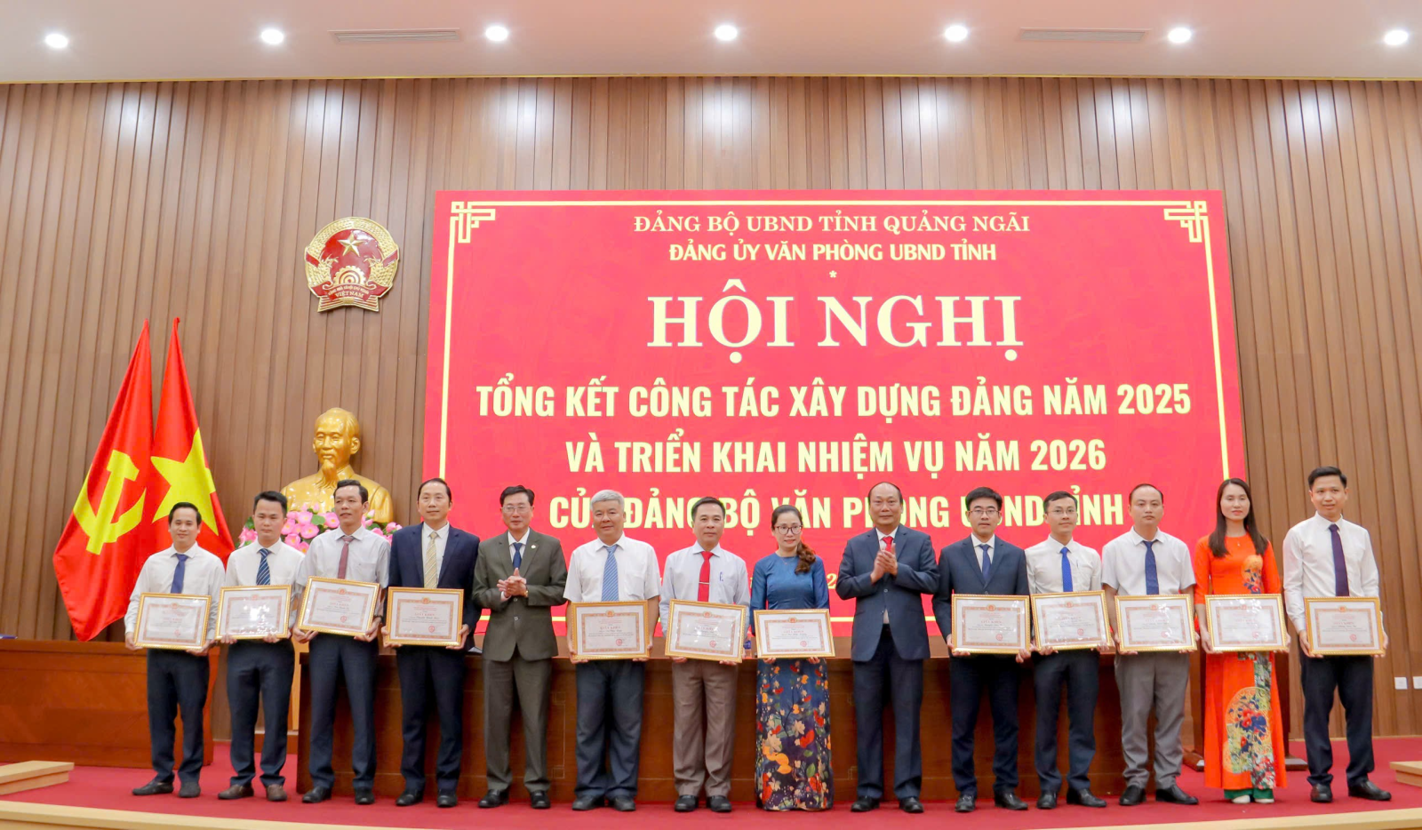 Dịp này, Đảng ủy Văn phòng UBND tỉnh tặng Giấy khen cho 2 Chi bộ và 17 đảng viên đạt tiêu chuẩn “Hoàn thành xuất sắc nhiệm vụ” năm 2025.