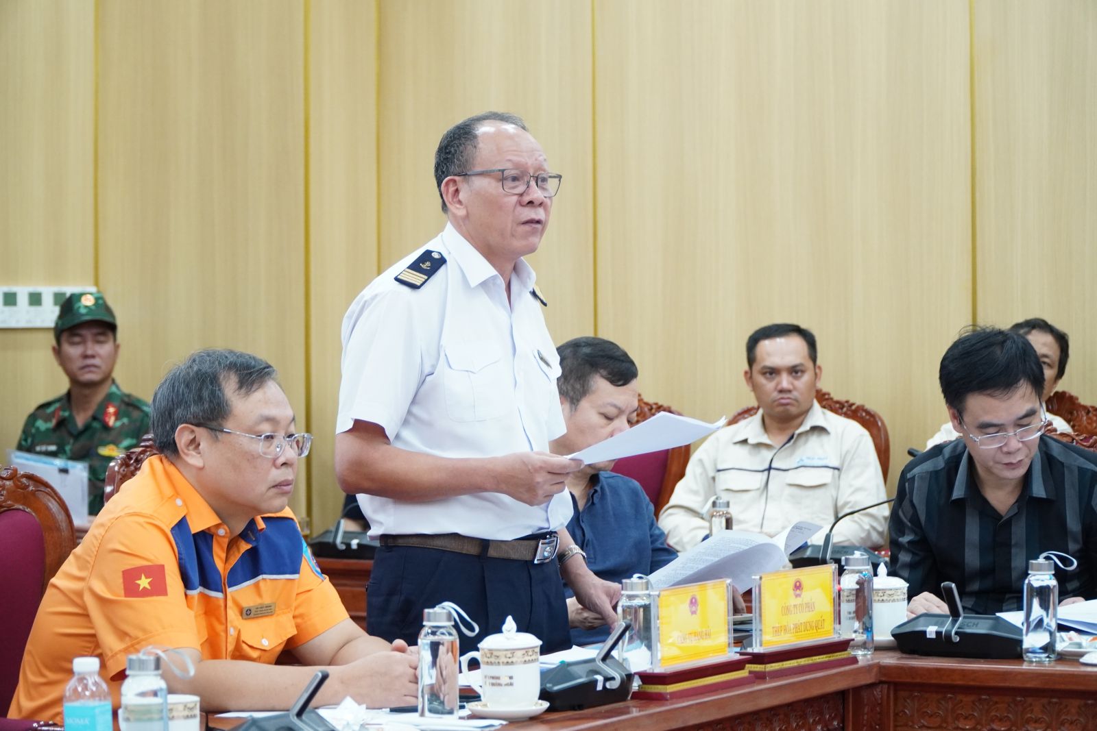 Làm việc với đoàn công tác có Chủ tịch UBND tỉnh Nguyễn Hoàng Giang, các Phó Chủ tịch UBND tỉnh: Nguyễn Công Hoàng và Đỗ Tâm Hiển; lãnh đạo các sở, ban ngành liên quan và chủ tàu Star Bueno.