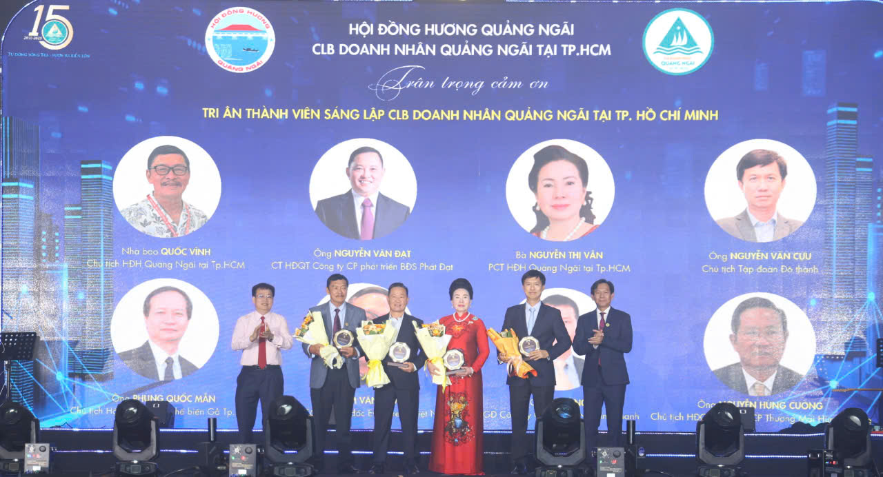 Phát biểu tại lễ kỷ niệm, Chủ tịch UBND tỉnh Nguyễn Hoàng Giang chúc mừng CLB Doanh nhân Quảng Ngãi tại TP.Hồ Chí Minh nhân dịp kỷ niệm 15 năm thành lập; đồng thời ghi nhận và biểu dương những đóng góp thiết thực của CLB cho địa phương trong thời gian qua. Đặc biệt là các hoạt động thiện nguyện, hỗ trợ học sinh nghèo, xây dựng nhà tình nghĩa, cũng như đóng góp ý tưởng và nguồn lực cho sự phát triển của tỉnh nhà. Chủ tịch UBND tỉnh nhấn mạnh, những nghĩa cử ấy đã góp phần làm sáng đẹp hơn hình ảnh “Doanh nhân Quảng Ngãi”- những con người nghĩa tình, trách nhiệm và khát vọng vươn xa giữa lòng TP.Hồ Chí Minh”.
