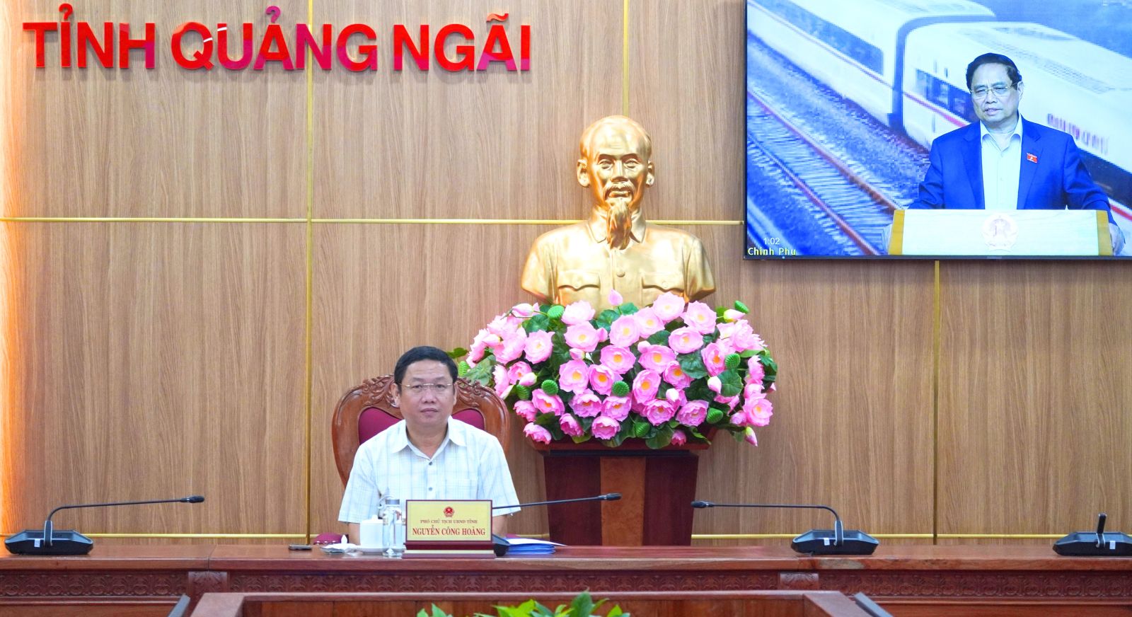 Sáng 23-10, Thủ tướng Chính phủ Phạm Minh Chính- Trưởng Ban Chỉ đạo các công trình trọng điểm, dự án quan trọng quốc gia lĩnh vực đường sắt chủ trì phiên họp thứ 4 của Ban Chỉ đạo. Phó Chủ tịch UBND tỉnh Nguyễn Công Hoàng chủ trì tại điểm cầu Quảng Ngãi.
