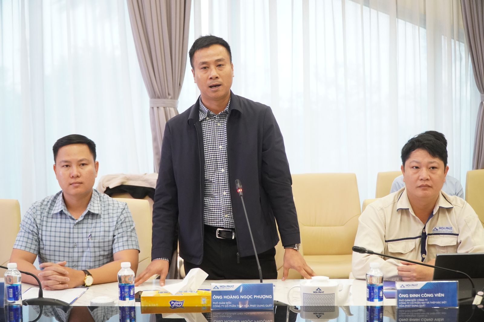 Tại cuộc họp về tiến độ Dự án sản xuất ray đường sắt và thép đặc biệt Hòa Phát Dung Quất, Phó Chủ tịch UBND tỉnh Đỗ Tâm Hiển ghi nhận nỗ lực của các sở, ngành và địa phương trong công tác phối hợp, đặc biệt là sự chủ động của Công ty và UBND xã Vạn Tường trong hoàn thiện hồ sơ, giải phóng mặt bằng, đảm bảo đủ điều kiện tổ chức Lễ khởi công theo kế hoạch.