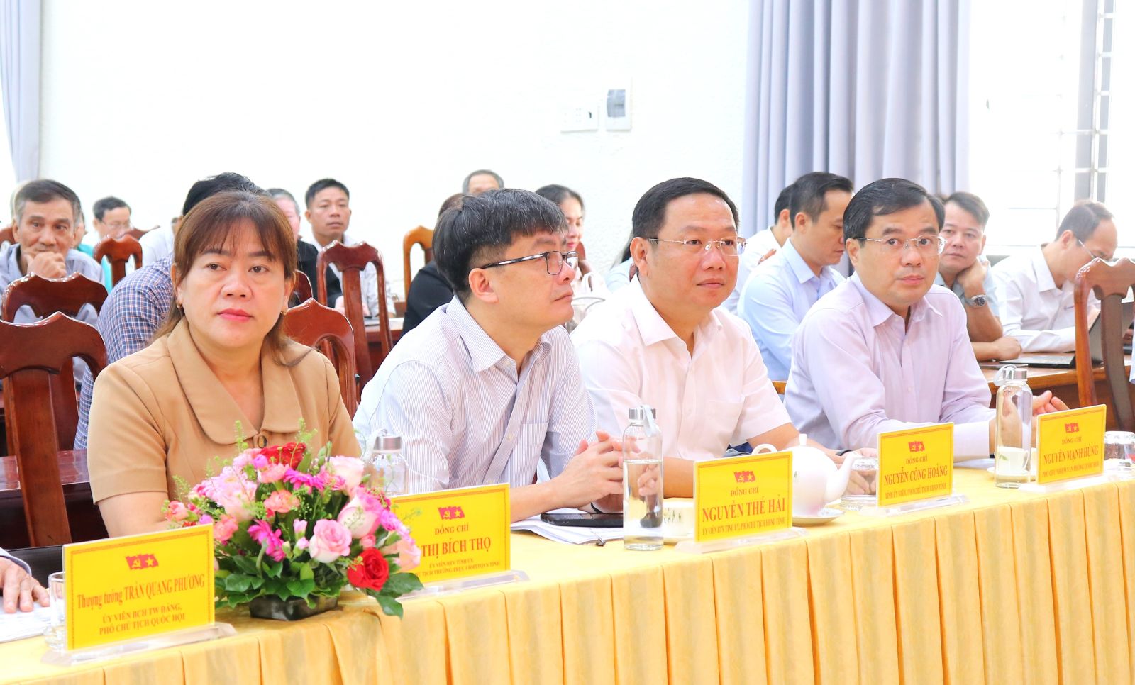 Dự buổi tiếp xúc cử tri có: Phó Chủ tịch HĐND tỉnh Nguyễn Thế Hải; Phó Chủ tịch Thường trực Ủy ban MTTQ Việt Nam tỉnh Y Thị Bích Thọ; Phó Chủ tịch UBND tỉnh Nguyễn Công Hoàng; lãnh đạo các Sở, ngành và cử tri phường Đức Phổ.