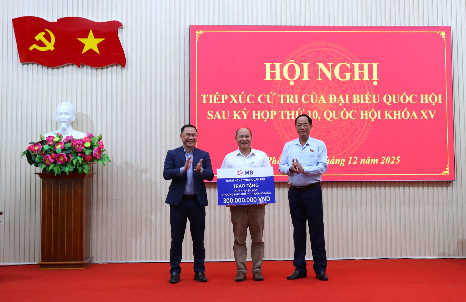 Dịp này, Thượng tướng Trần Quang Phương - Ủy viên Ban Chấp hành Trung ương Đảng, Phó Chủ tịch Quốc hội đã trao 30 suất quà đến bà con có hoàn cảnh khó khăn, gia đình chính sách, bị ảnh hưởng bởi bão, lũ trong trời gian qua; trao tặng phần quà đến tập thể lãnh đạo, cán bộ công chức phường Đức Phổ. Cùng với Ngân hàng thương mại CP Quân đội hỗ trợ Quỹ khuyến học phường Đức Phổ 300 triệu đồng.