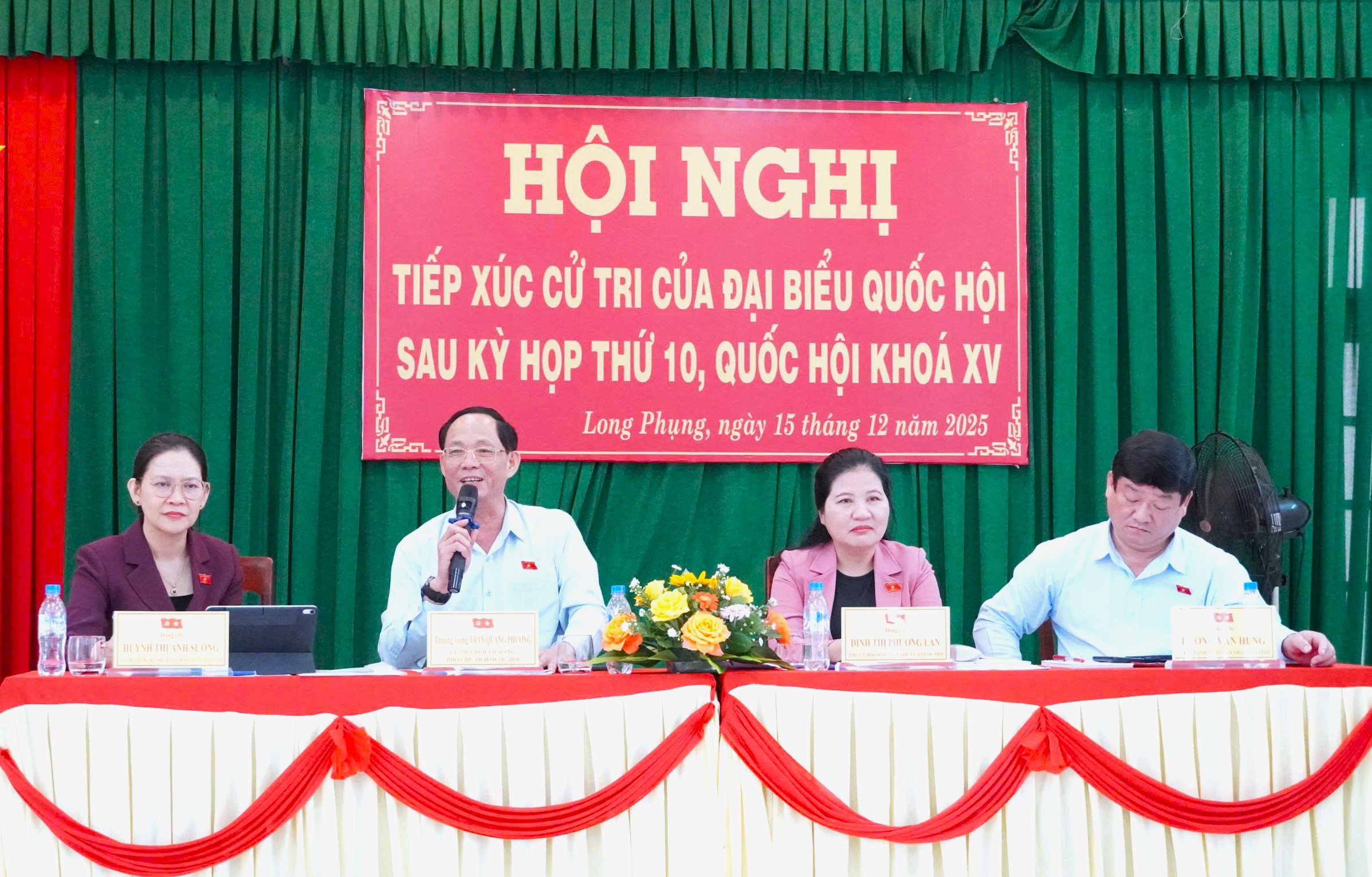 Dự buổi tiếp xúc cử tri có: Phó Chủ tịch HĐND tỉnh Nguyễn Thế Hải; Phó Chủ tịch Thường trực Ủy ban MTTQ Việt Nam tỉnh Y Thị Bích Thọ; Phó Chủ tịch UBND tỉnh Nguyễn Công Hoàng; lãnh đạo các Sở, ngành và cử tri xã Long Phụng.