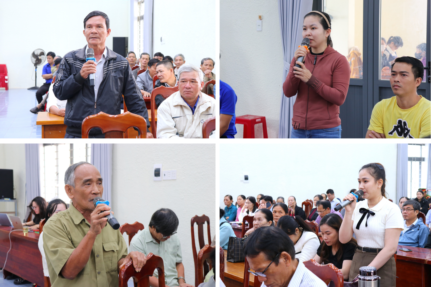 Tại hội nghị, các cử tri đã đề xuất các ý kiến, kiến nghị như: quan tâm đầu tư chống sạt lỡ Dọc Sông Vệ đoạn qua địa bàn xã còn nhiều đoạn chưa được kè nên vào mùa lũ lụt thường bị sạt lở gây mất an toàn cho người dân; quan tâm xây dựng Hệ thống cấp nước sạch tập trung, phục vụ nhu cầu sinh hoạt của người dân; xử lý mương thoát nước tuyến Bồ Đề - Mỹ Á để tạo điều kiện thuận lợi cho nhân dân đi lại thuận lợi; quan tâm khơi thông luồng lạch Cửa Lở để tàu thuyền ra vào cửa biển, neo trú được an toàn, thuận tiện;...