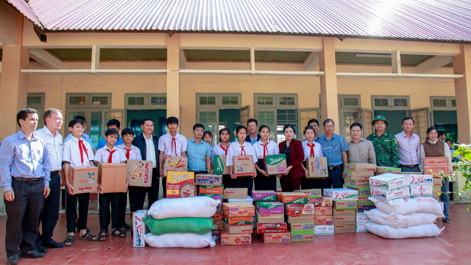 Dịp này, Phó Chủ tịch Thường trực UBND tỉnh Y Ngọc trao tặng cho các trường một số nhu yếu phẩm gồm mì tôm, gạo, dầu ăn, sữa… nhằm kịp thời động viên thầy cô và học sinh vượt qua khó khăn sau mưa lũ, sớm ổn định việc dạy và học.