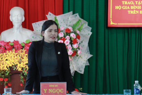 Ủy viên Ban Thường vụ Tỉnh ủy, Phó Chủ tịch Thường trực UBND tỉnh Y Ngọc tặng quà các hộ nghèo, gia đình chính sách.