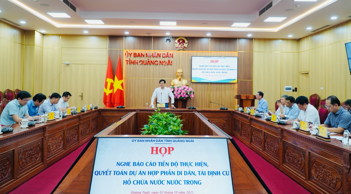 Chiều 02/10, Phó Chủ tịch UBND tỉnh Trần Phước Hiền chủ trì cuộc họp để nghe báo cáo tiến độ thực hiện, quyết toán dự án Hợp phần di dân, tái định cư hồ chứa nước Nước Trong.