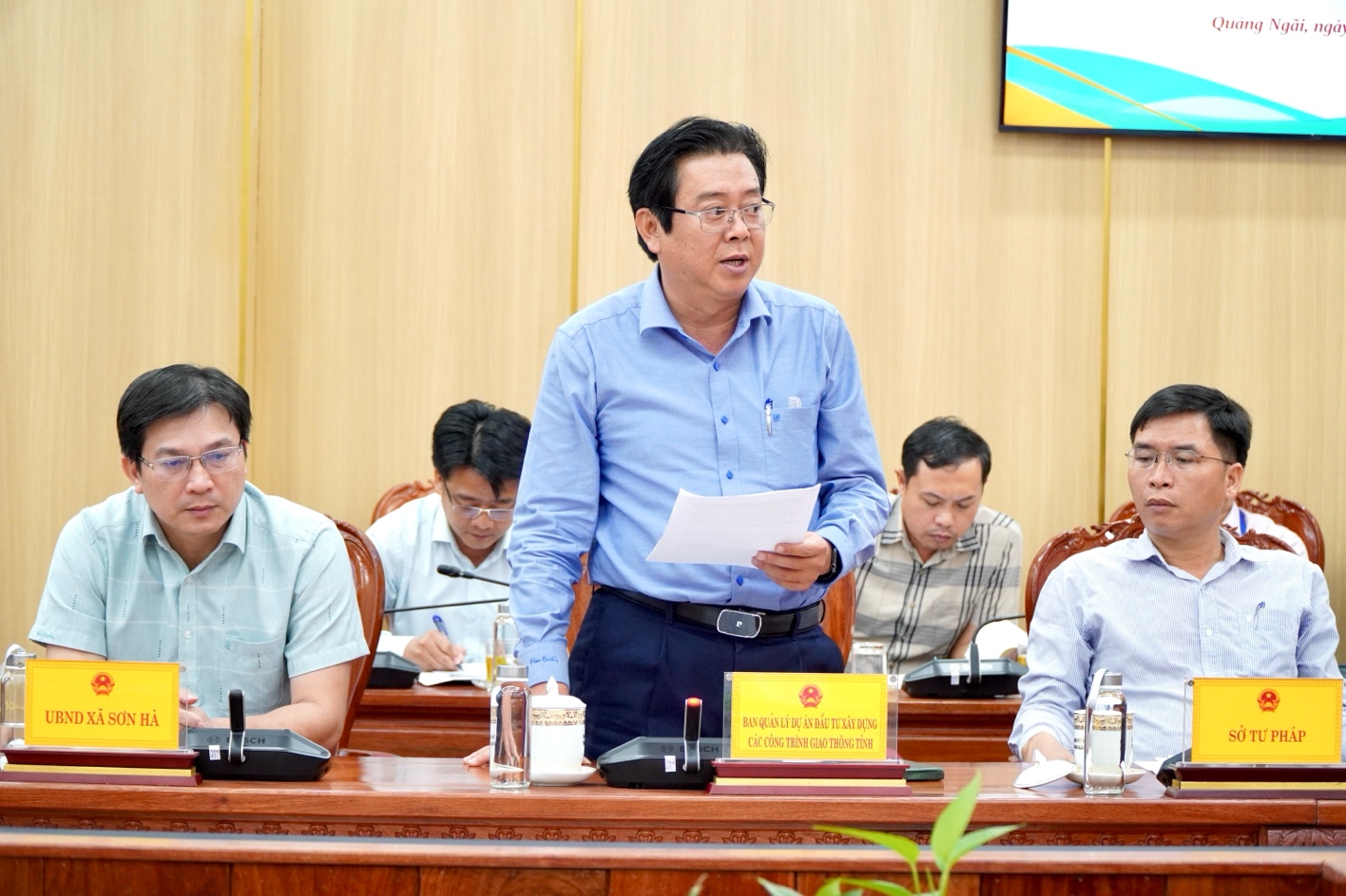 Giám đốc Ban Quản lý dự án đầu tư xây dựng các công trình Giao thông tỉnh Trần Hoàng Vĩnh báo cáo tại cuộc họp