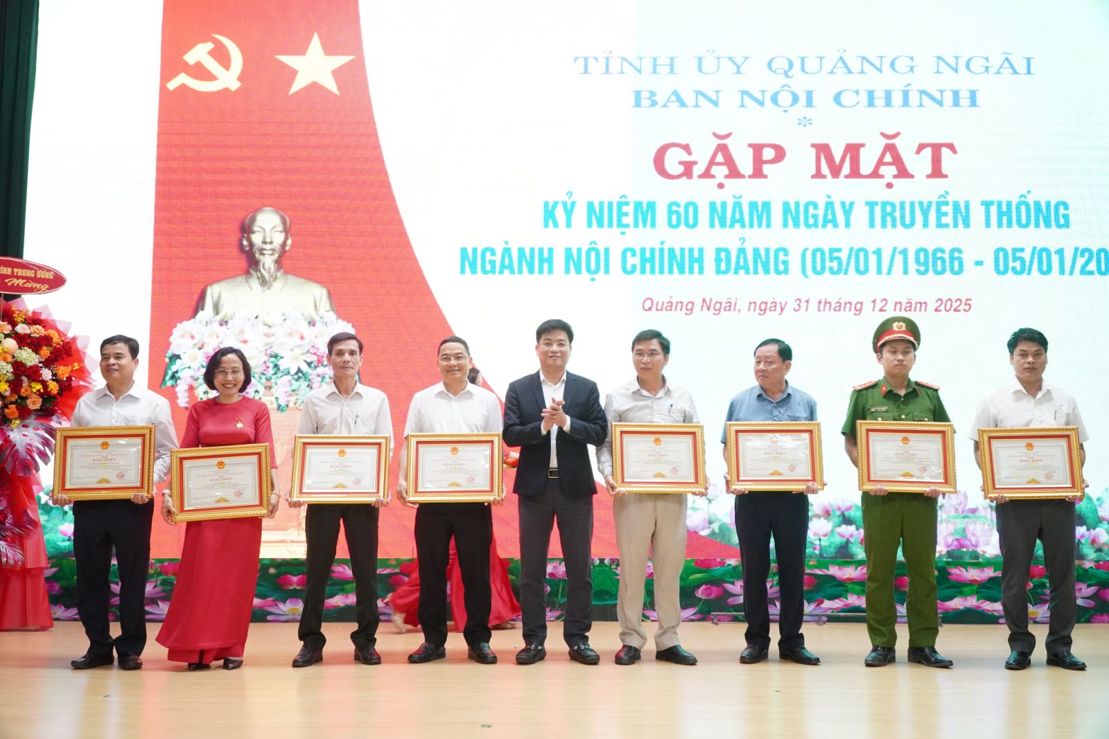 Tại buổi gặp mặt, Ban Nội Chính Trung ương đã trao Kỷ niệm chương vì sự nghiệp nội chính Đảng cho 05 cá nhân thuộc Ban Nội chính Tỉnh ủy. UBND tỉnh tặng Bằng khen cho 01 tập thể, 11 có thành tích xuất sắc trong quá trình xây dựng và phát triển ngành Nội chính Đảng.