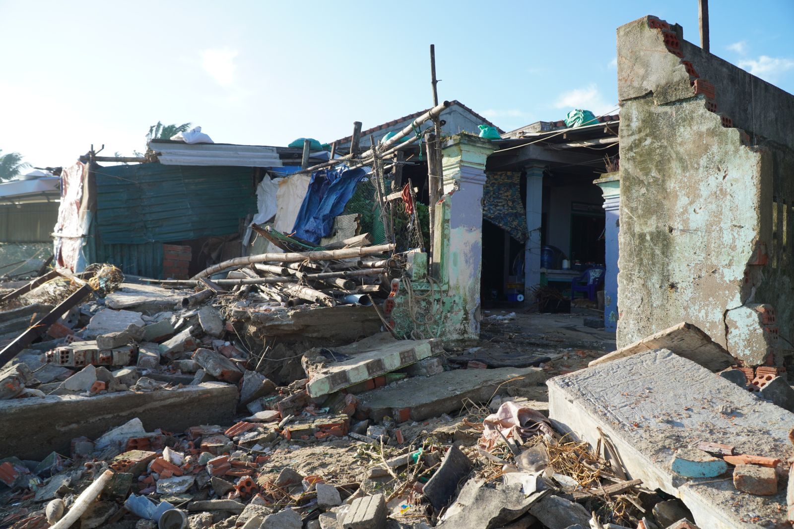 Tại xã Vạn Tường, theo báo cáo của lãnh đạo xã, tối 6/11, do ảnh hưởng của bão số 13, sóng lớn kết hợp triều cường đã làm sạt lở khoảng 250m tuyến đường bê tông dẫn ra bãi biển thôn An Cường. Một số đoạn đường bị lún sâu 30 – 50cm, gây khó khăn cho việc đi lại và ảnh hưởng đến sinh kế của người dân.