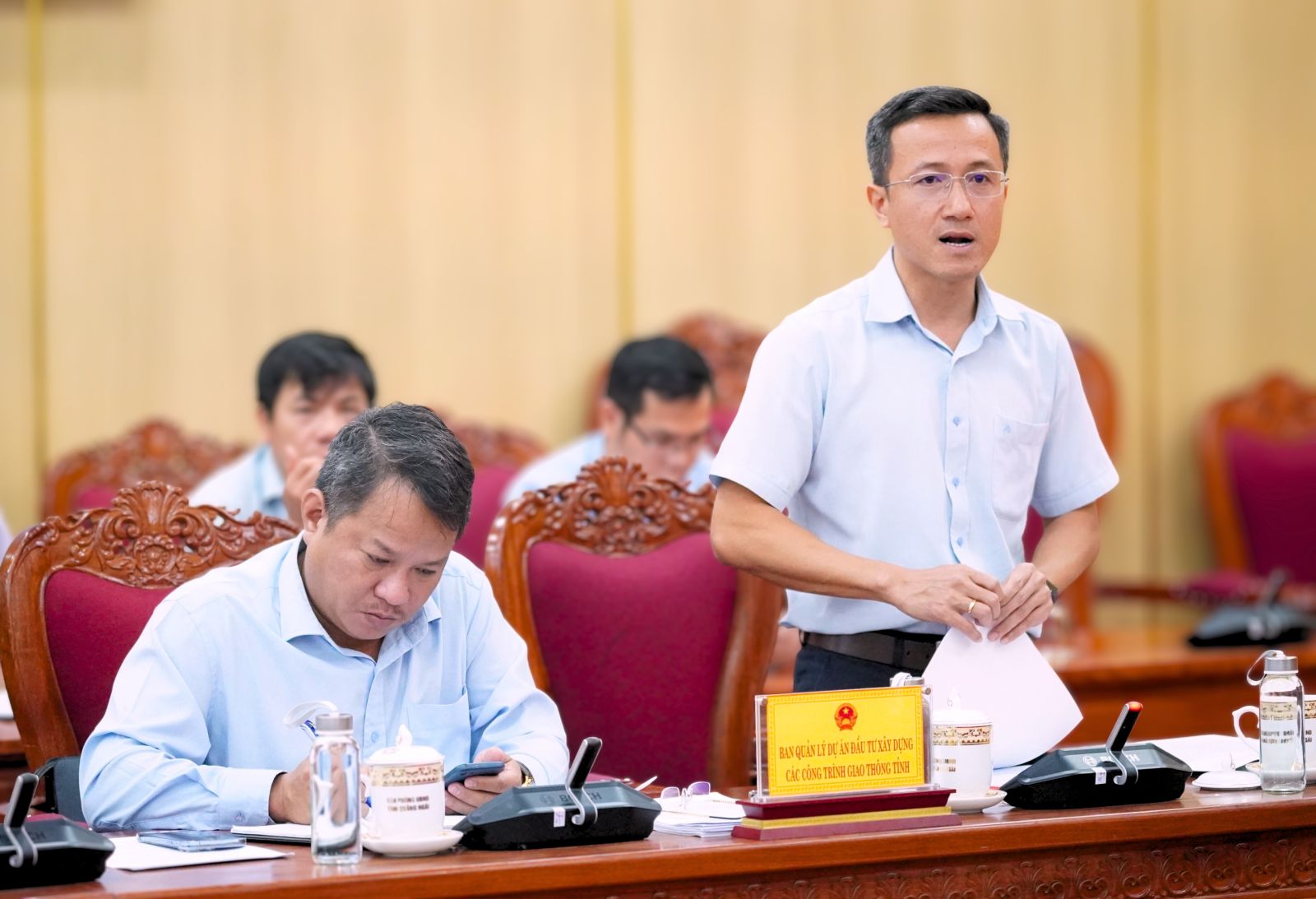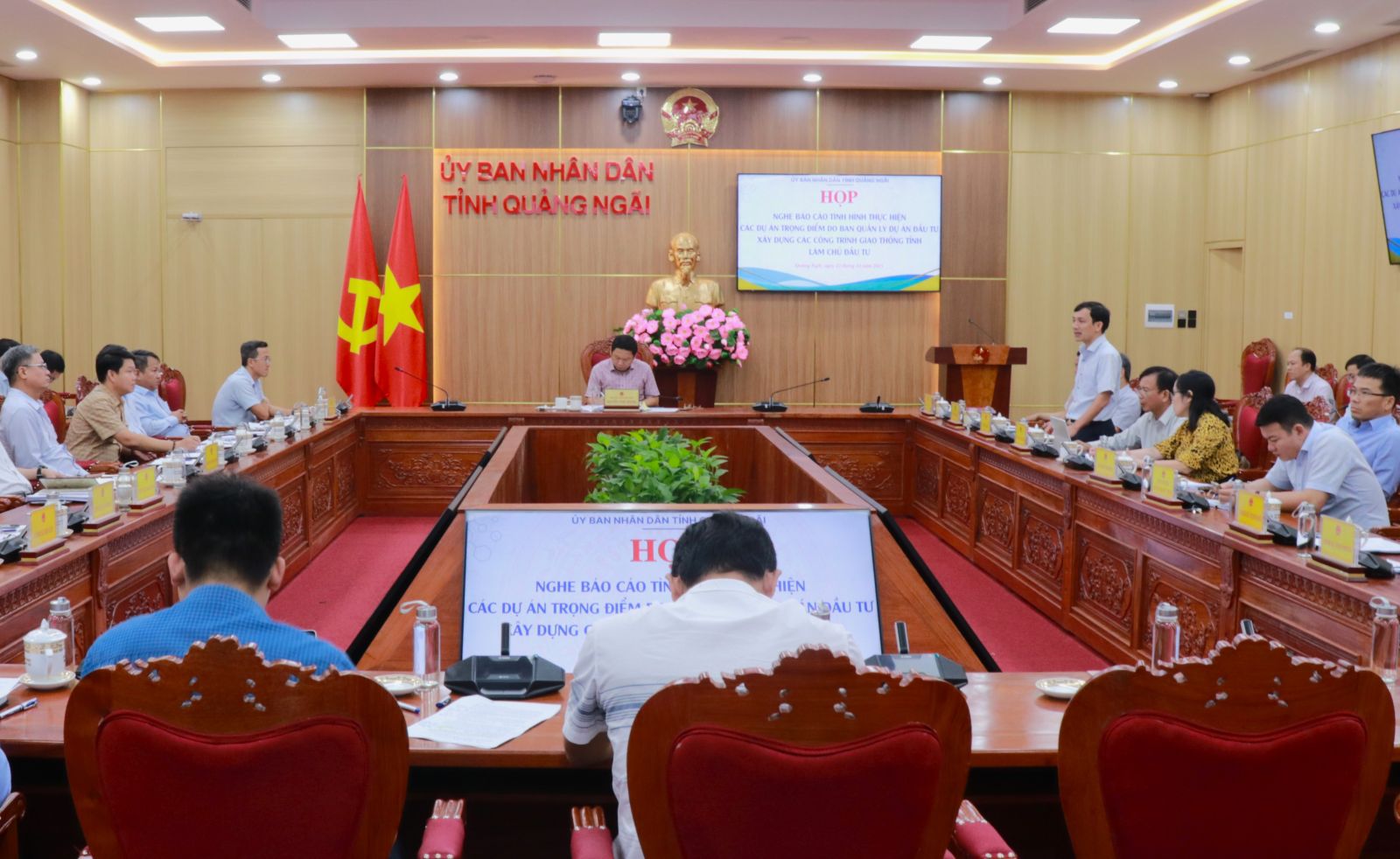 Tại cuộc họp, Ban Quản lý dự án đầu tư xây dựng các công trình Giao thông tỉnh (Ban Quản lý dự án) đã báo cáo về tình hình triển khai thực hiện các dự án trọng điểm, gồm: Tiểu dự án bồi thường, hỗ trợ, tái định cư dự án thành phần đoạn Quảng Ngãi- Hoài Nhơn, đoạn qua tỉnh Quảng Ngãi; đường Hoàng Sa - Dốc Sỏi; đường ven biển Dung Quất- Sa Huỳnh, giai đoạn IIa, thành phần 1; đường ven biển Dung Quất- Sa Huỳnh, giai đoạn IIb; cầu và đường nối từ Trung tâm Sơn Tịnh đến Tư Nghĩa (cầu Trà Khúc 3); đường nối từ cầu Thạch Bích đến Tịnh Phong; Kè chống sạt lở kết hợp tạo quỹ đất bờ Bắc sông Trà Khúc, đoạn qua xã Tịnh An và Tịnh Long (TP.Quảng Ngãi); Kè chống sạt lở kết hợp tạo quỹ đất bờ Bắc sông Trà Khúc, đoạn qua xã Tịnh Long và Tịnh Khê (TP.Quảng Ngãi); đập dâng hạ lưu sông Trà Khúc; cầu Trà Khúc 1.