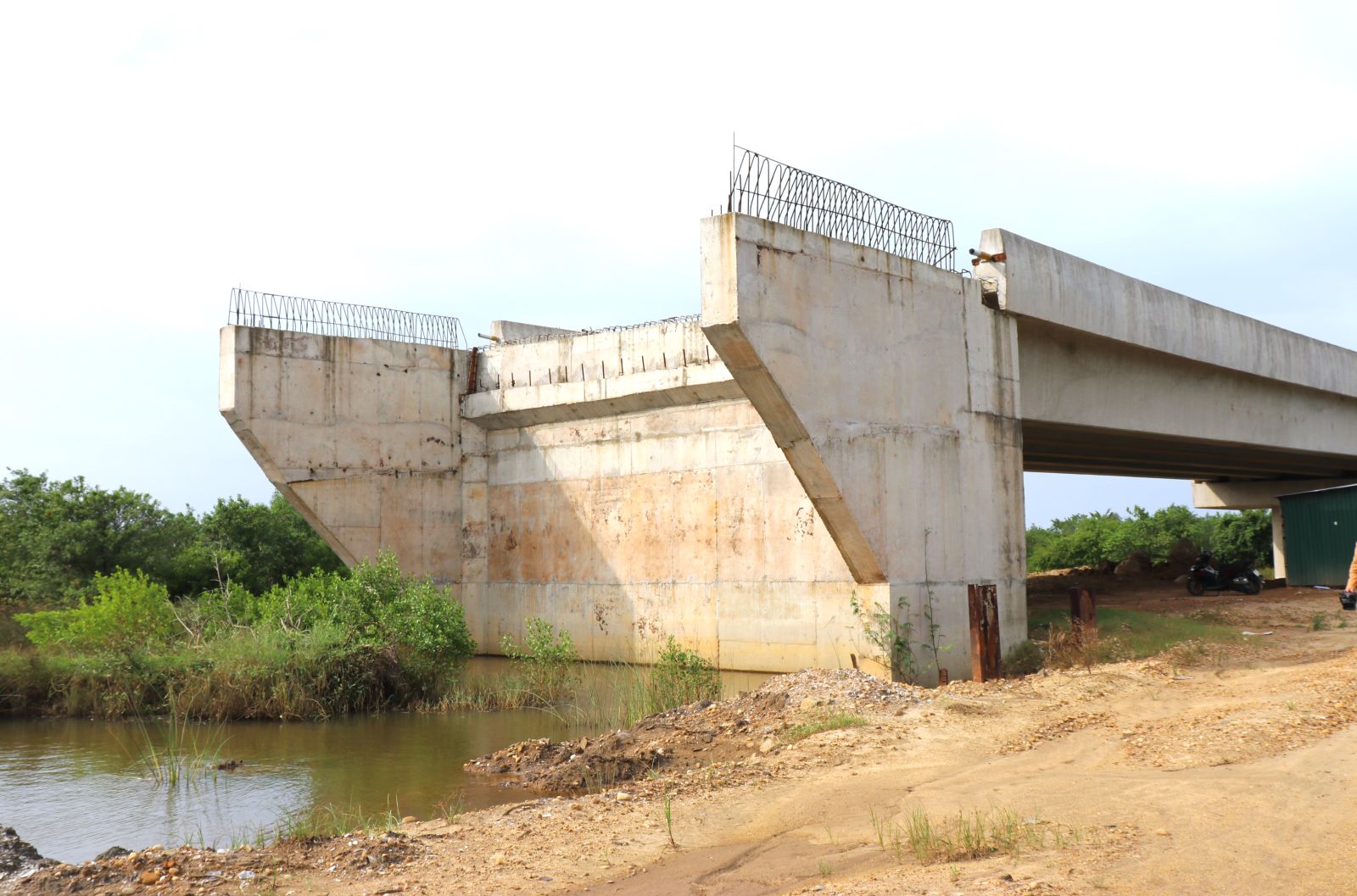 Trong đó, vướng mắc lớn nhất là tại vị trí xây dựng cầu Cầu Me Đông. Nhiều tháng qua hạng mục cầu và đường nối hai đầu cầu phải dừng thi công. Hiện khối lượng xây dựng cầu mới chỉ đạt 7/10 nhịp.