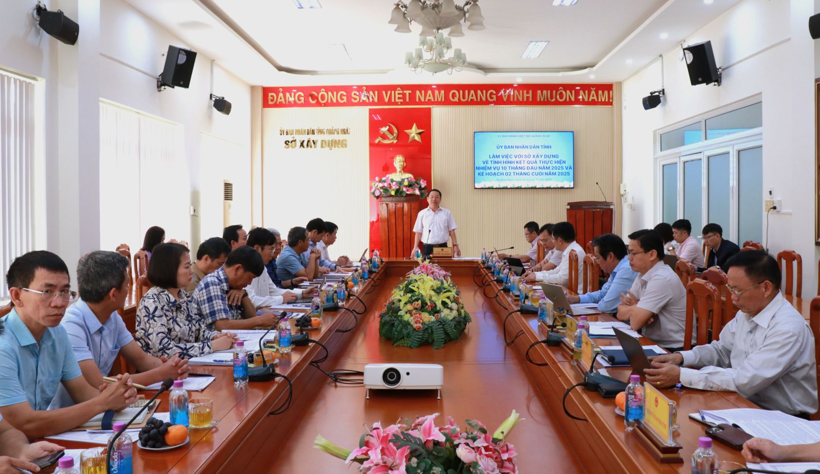 Theo báo cáo của Sở Xây dựng, trong 10 tháng đầu năm 2025 mặc dù có nhiều khó khăn, song với tinh thần trách nhiệm và sự nỗ lực của tập thể lãnh đạo, cán bộ, công chức, viên chức của Sở nên đã triển khai thực hiện đầy đủ các nhiệm vụ được UBND tỉnh giao trong chương trình công tác tháng, quý, năm và các nhiệm vụ phát sinh đảm bảo tiến độ và chất lượng đề ra. Cụ thể, đã hoàn thành 18/24 nhiệm vụ trọng tâm trong chương trình công tác UBND tỉnh và hoàn thành 78/80 nhiệm vụ phát sinh, không có nhiệm vụ trễ hạn.
