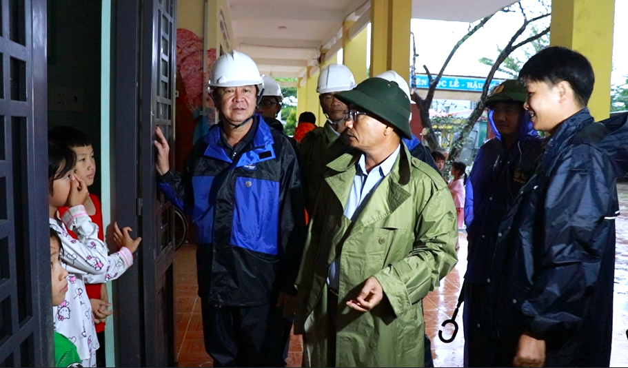 Phó Chủ tịch UBND tỉnh cũng đến thăm, động viên người dân tại các điểm tránh trú bão, thăm hỏi tình hình sinh hoạt, chia sẻ khó khăn và động viên bà con yên tâm ở lại nơi trú bão an toàn, tuyệt đối không quay về nhà khi chưa có thông báo cho phép của chính quyền địa phương.