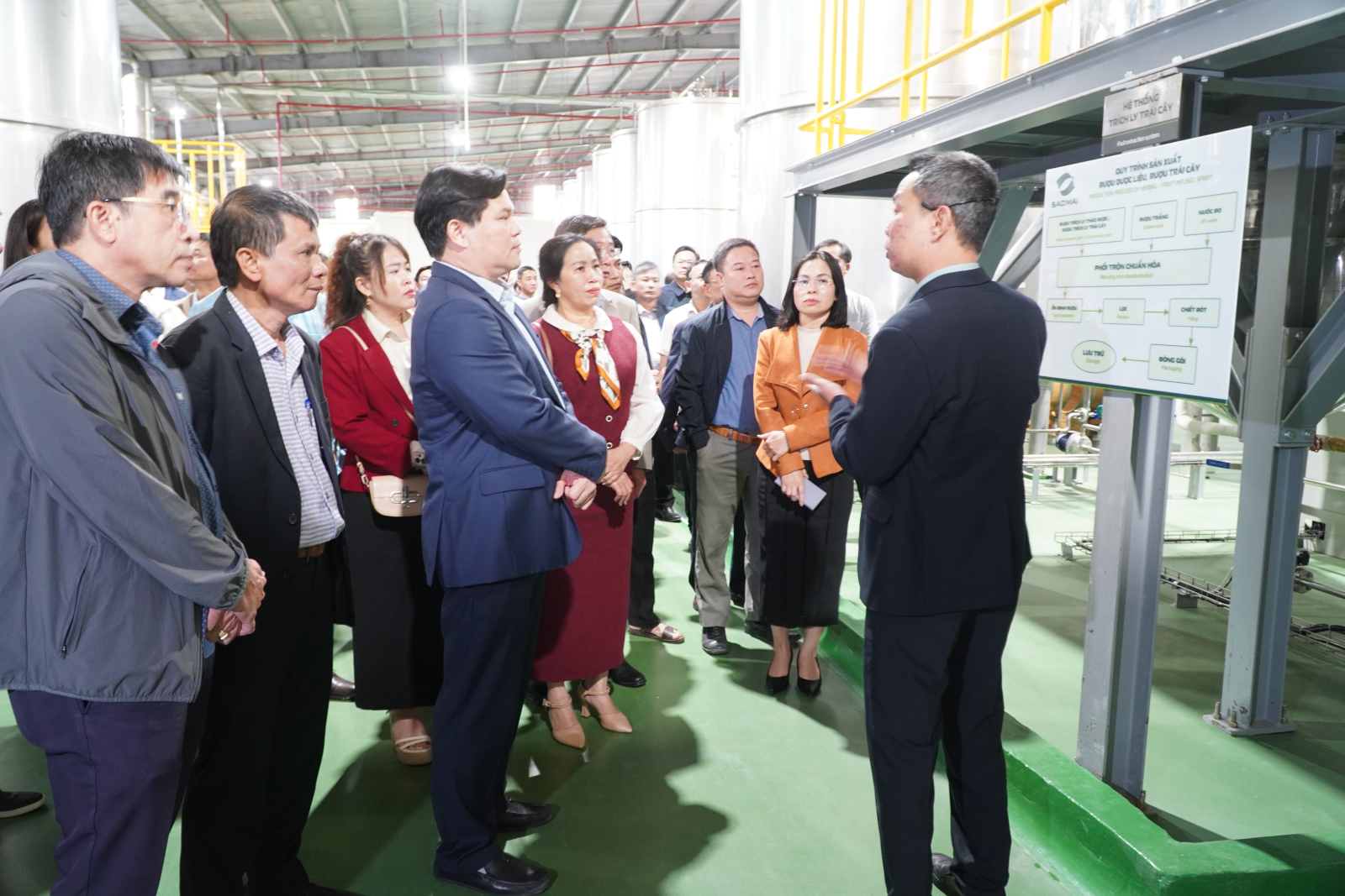 Phó Chủ tịch UBND tỉnh Trần Phước Hiền đã đi thăm, trực tiếp khảo sát dây chuyền sản xuất, khu vực sơ chế, bảo quản và chế biến các sản phẩm của Nhà máy Chế biến nông sản và dược liệu Sao Mai tại Khu công nghiệp Sao Mai.