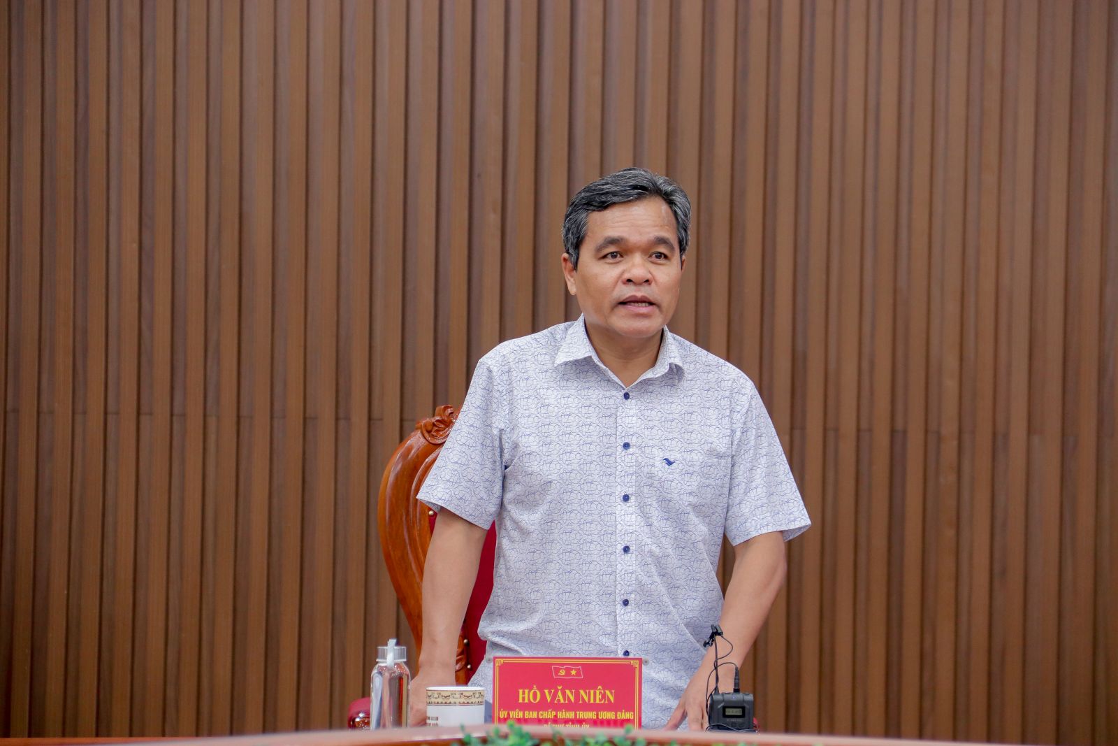 Phát biểu tại buổi làm việc, Ủy viên BCH Trung ương Đảng, Bí thư Tỉnh ủy Hồ Văn Niên báo cáo về tình hình mưa bão, những thiệt hại sơ bộ trên địa bàn tỉnh. Trong thời gian tới, tỉnh sẽ tiếp tục nắm chắc diễn biến, tập trung khắc phục hậu quả bão lũ, đặc biệt là khẩn trương xử lý các điểm sạt lở để bảo đảm giao thông cho người dân. Các nhiệm vụ bảo đảm lương thực, thực phẩm, nhu yếu phẩm và chăm sóc y tế tiếp tục được ưu tiên triển khai. Bên cạnh đó, tỉnh sẽ đẩy nhanh công tác sửa chữa hạ tầng, nhất là hệ thống đường sá và các công trình thiết yếu. Bí thư Tỉnh ủy khẳng định địa phương sẽ nghiêm túc tiếp thu ý kiến chỉ đạo và tổ chức thực hiện đồng bộ, hiệu quả trong thời gian tới.